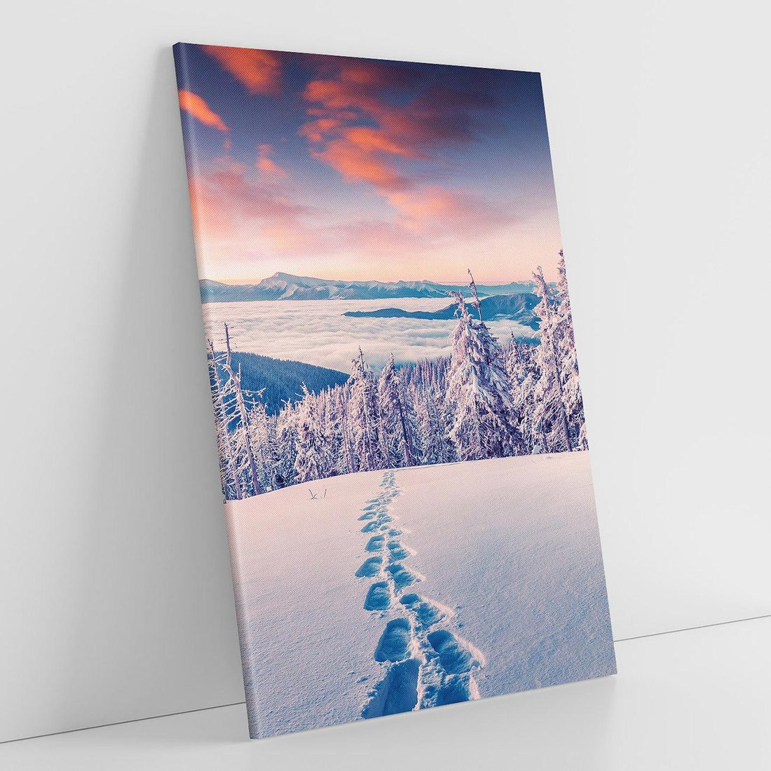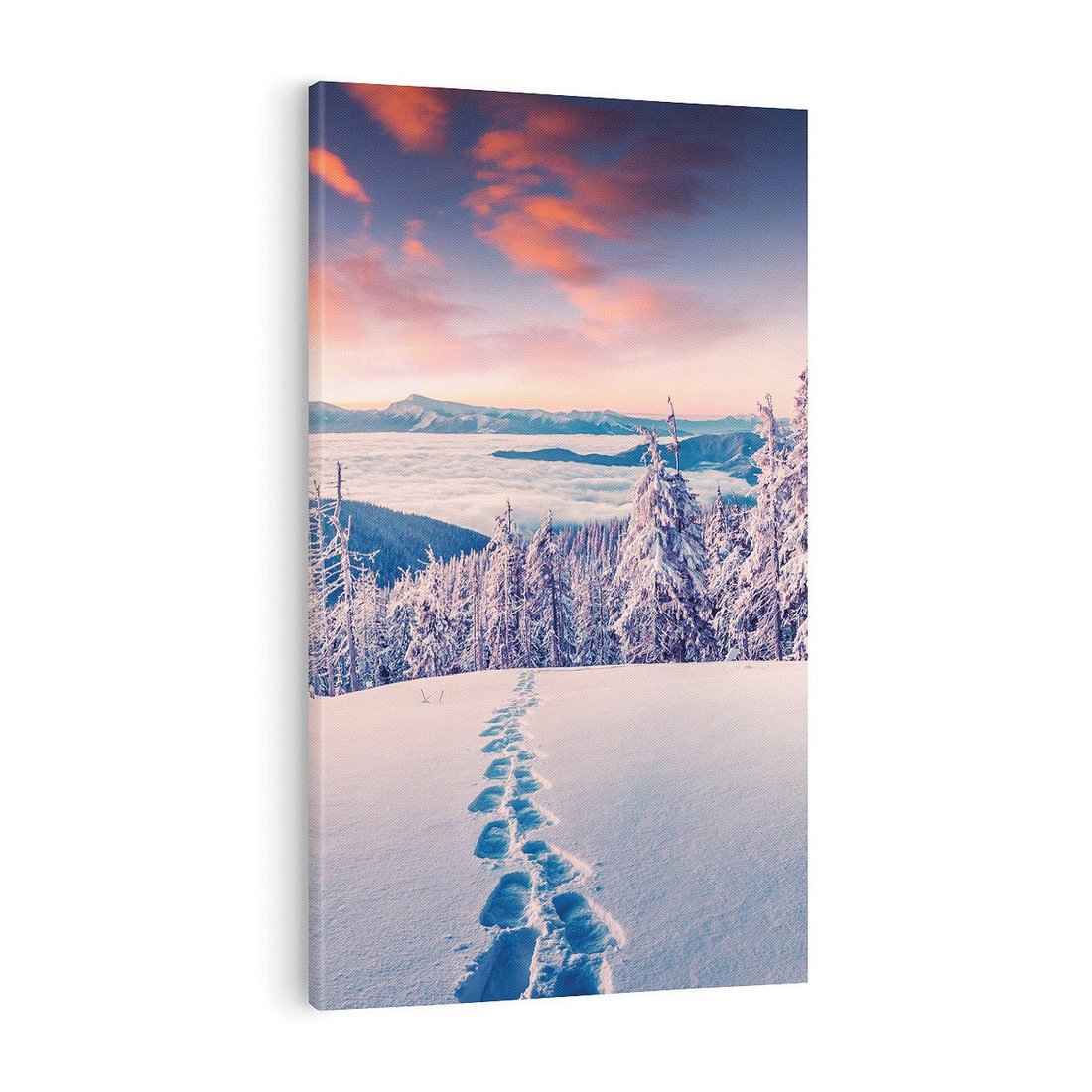 Przenieś się w spokojną atmosferę zimowych gór dzięki temu uroczemu obrazowi. Białe szczyty, pokryte śniegiem drzewa i chłodna aura tworzą harmonijną kompozycję. Ten obraz dodaje spokoju i ukojenia, idealny dla miłośników zimy i piękna przyrody górskiej.