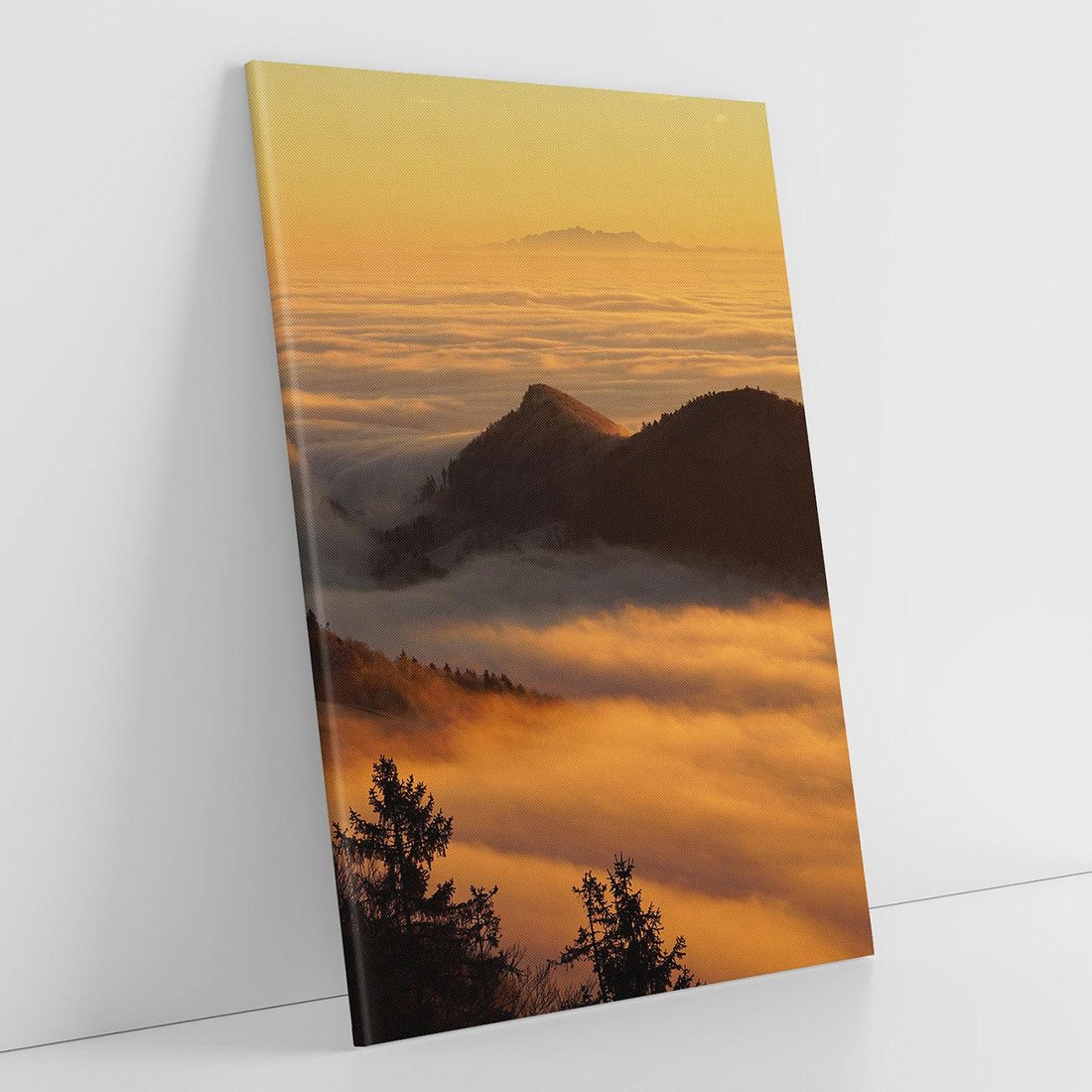 Przenieś się w magiczny świat górskiego lasu dzięki temu uroczemu obrazowi. Drzewa, które gubią się w górskiej scenerii, tworzą mistyczną atmosferę. Ta kompozycja dodaje spokoju i harmonii natury, idealna dla miłośników górskich krajobrazów i piękna lasów.