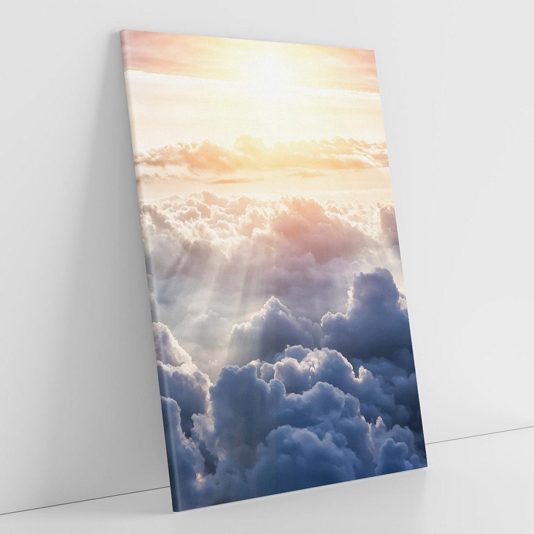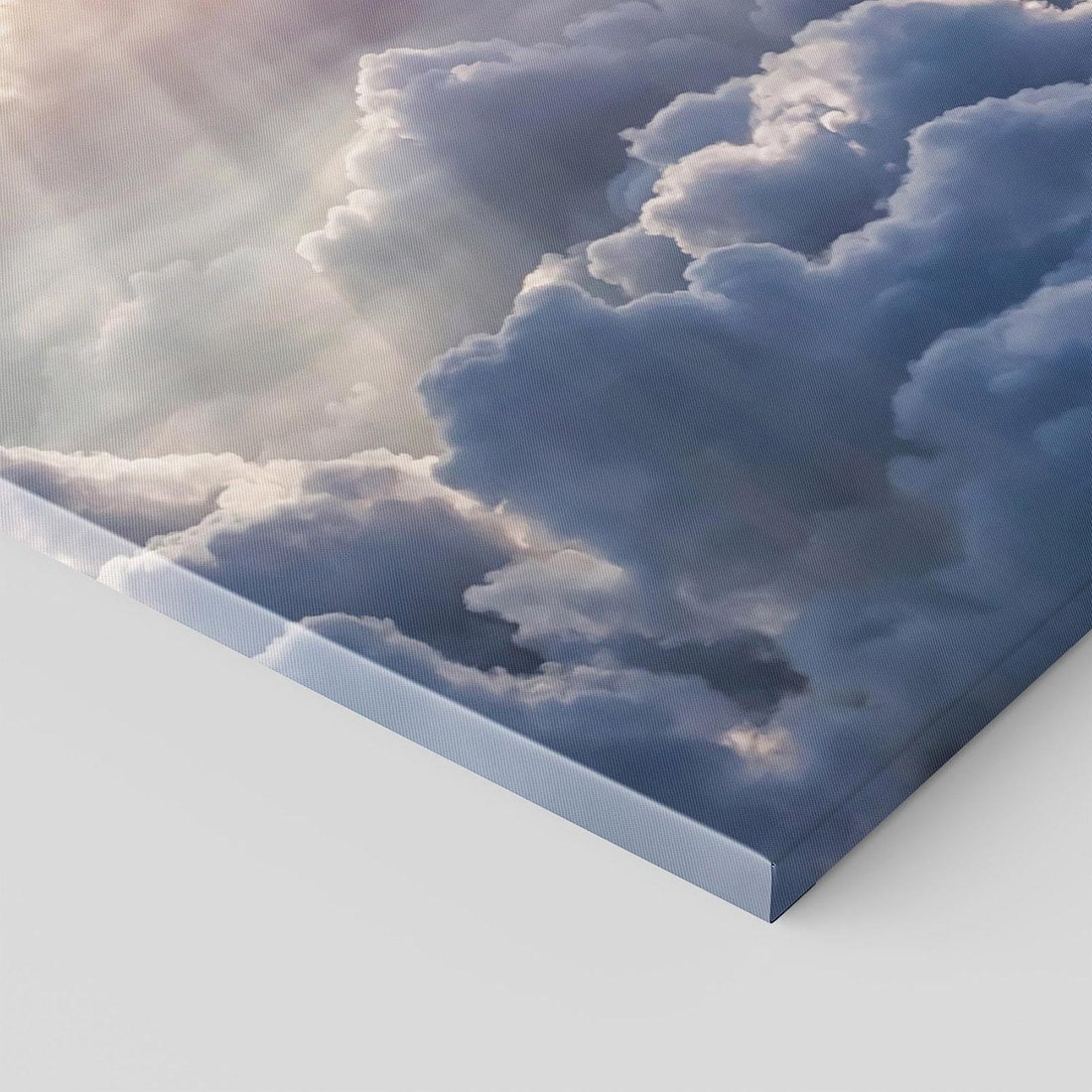 Przenieś się w świat niebiańskich widoków dzięki temu inspirującemu obrazowi przedstawiającemu niebo, słońce i chmury. Promienie słoneczne, kolorowe chmury i niesamowite kolory tworzą nastrojową atmosferę. Ten obraz dodaje poczucia siły i refleksji, idealny dla miłośników nieba i spektakularnych zachodów słońca.