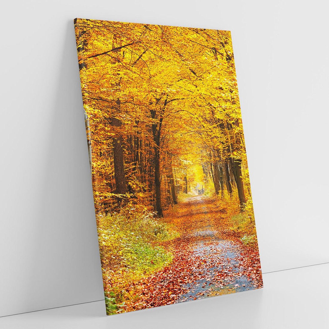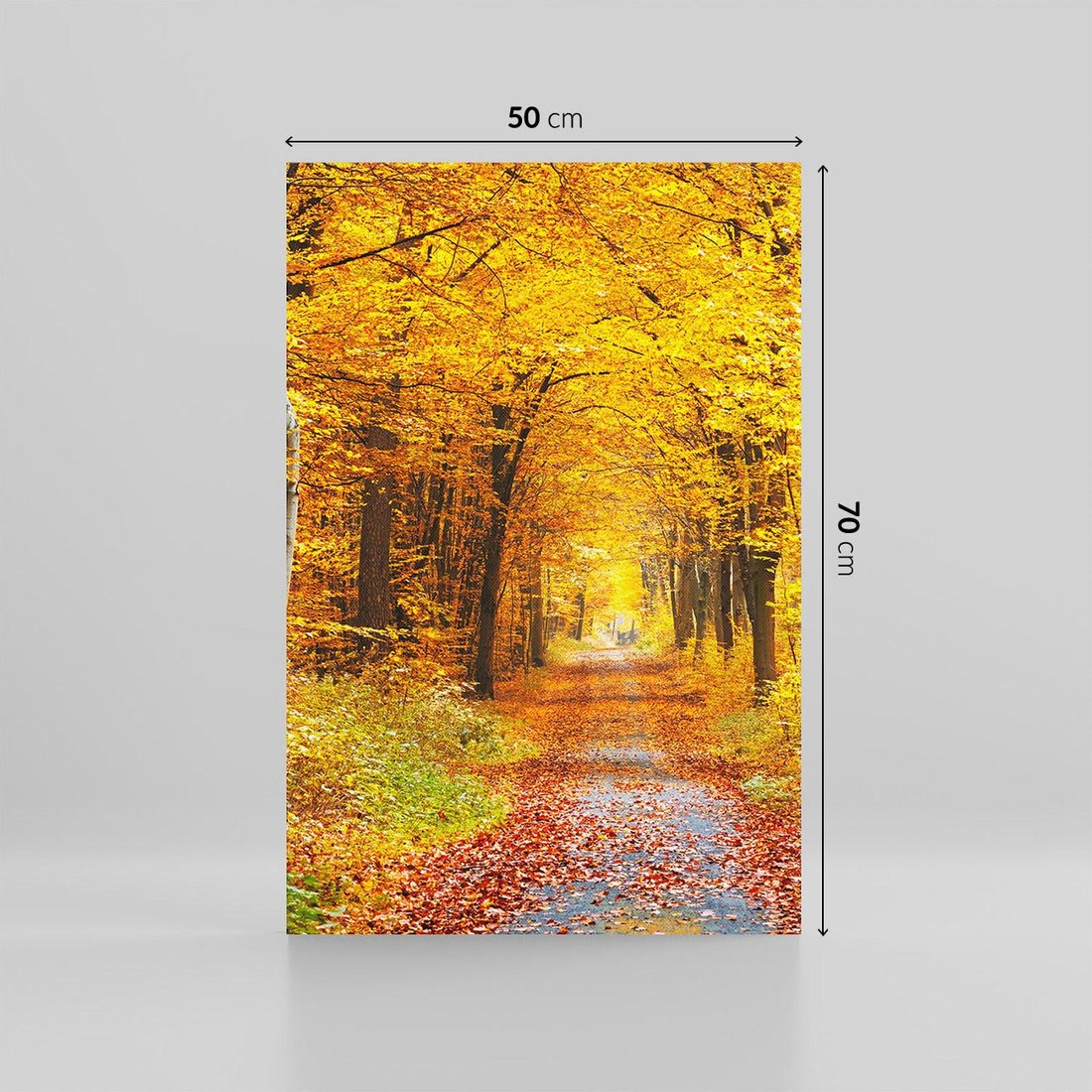 Przenieś się do kolorowego jesiennej lasu dzięki temu malowniczemu obrazowi. Złote liście, majestatyczne drzewa i harmonijna kompozycja tworzą nastrojową aurę. Ta kompozycja dodaje ciepła i piękna natury, idealna dla osób pragnących wprowadzić do swojego wnętrza urok jesieni i spokoju lasu.