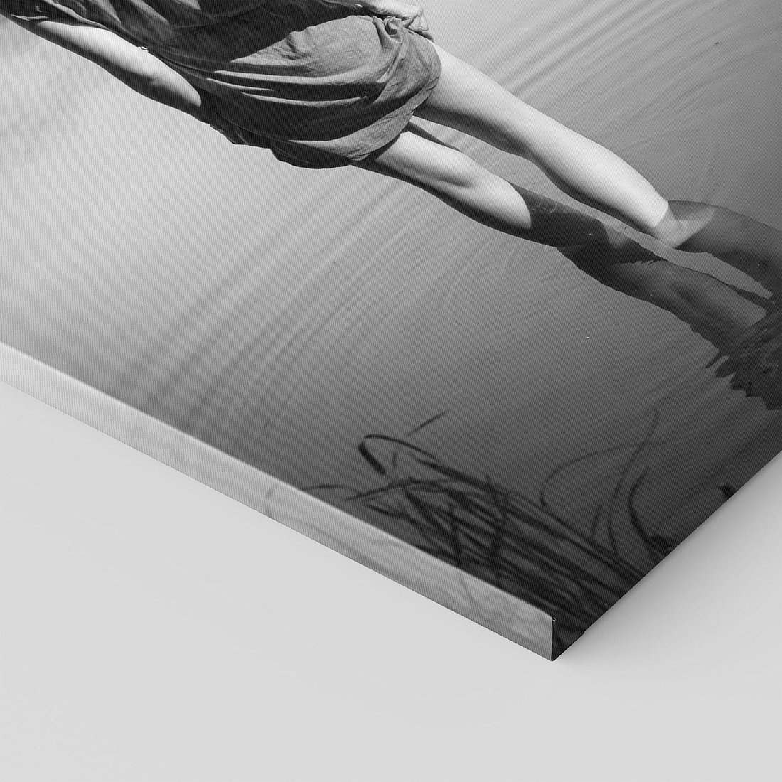 Obraz na płótnie 50x70 - Kapiel w Mieście - czarno białe zdjęcie, kobieta wchodzi do wody