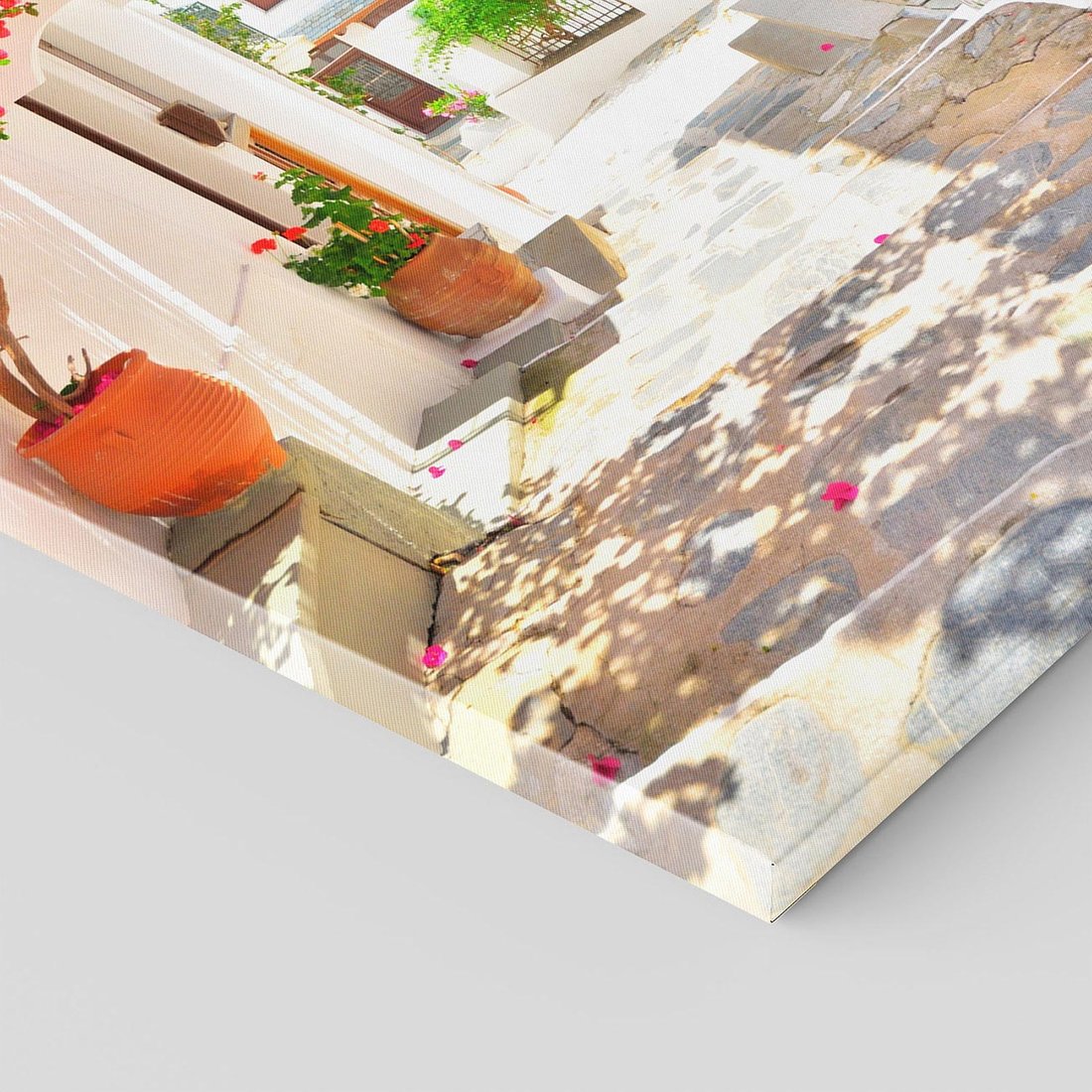 Ożyw swoje wnętrze tym uroczym obrazem przedstawiającym kolorowe kwiaty na urokliwej uliczce. Soczyste kolory, delikatne detale i letni nastrój tworzą radosną atmosferę. Ten obraz dodaje świeżości i wakacyjnego nastroju, idealny dla osób pragnących przynieść do swojego domu atmosferę letnich wakacji i piękno natury.