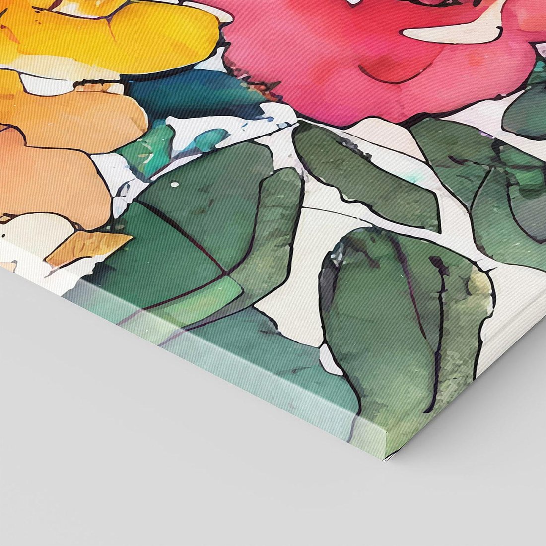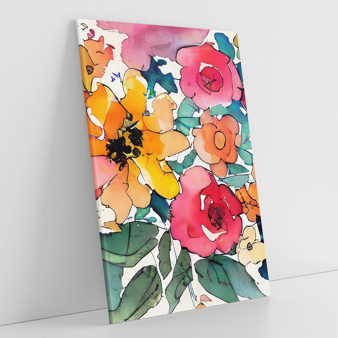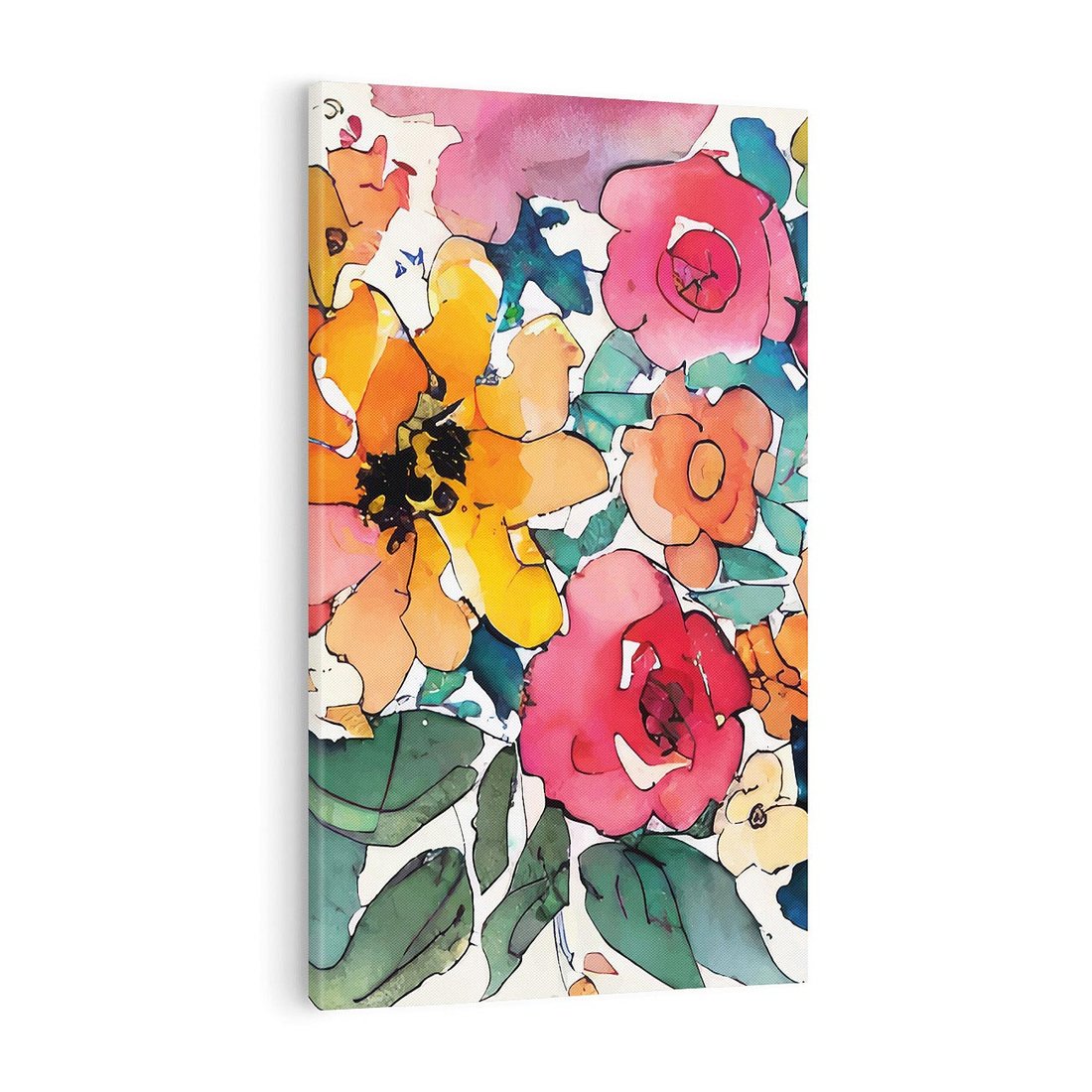 Obraz na płótnie 50x70 - Kwiatowy Impuls Kolorów - abstrakcyjne kolorowe kwiaty, szkic
