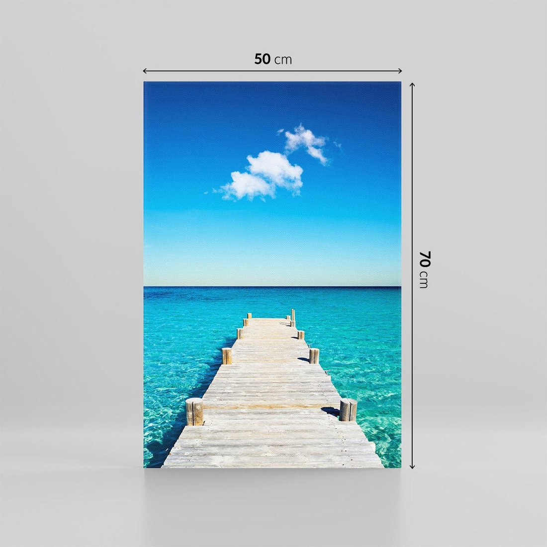 Odkryj magię lata nad morzem dzięki temu urokliwemu obrazowi przedstawiającemu pomost. Morze, słońce i letnia atmosfera tworzą aurę wakacyjnego nastroju i beztroskiego klimatu. Ta kompozycja dodaje relaksu i radości, idealna dla miłośników plażowych widoków i wakacyjnego wypoczynku.