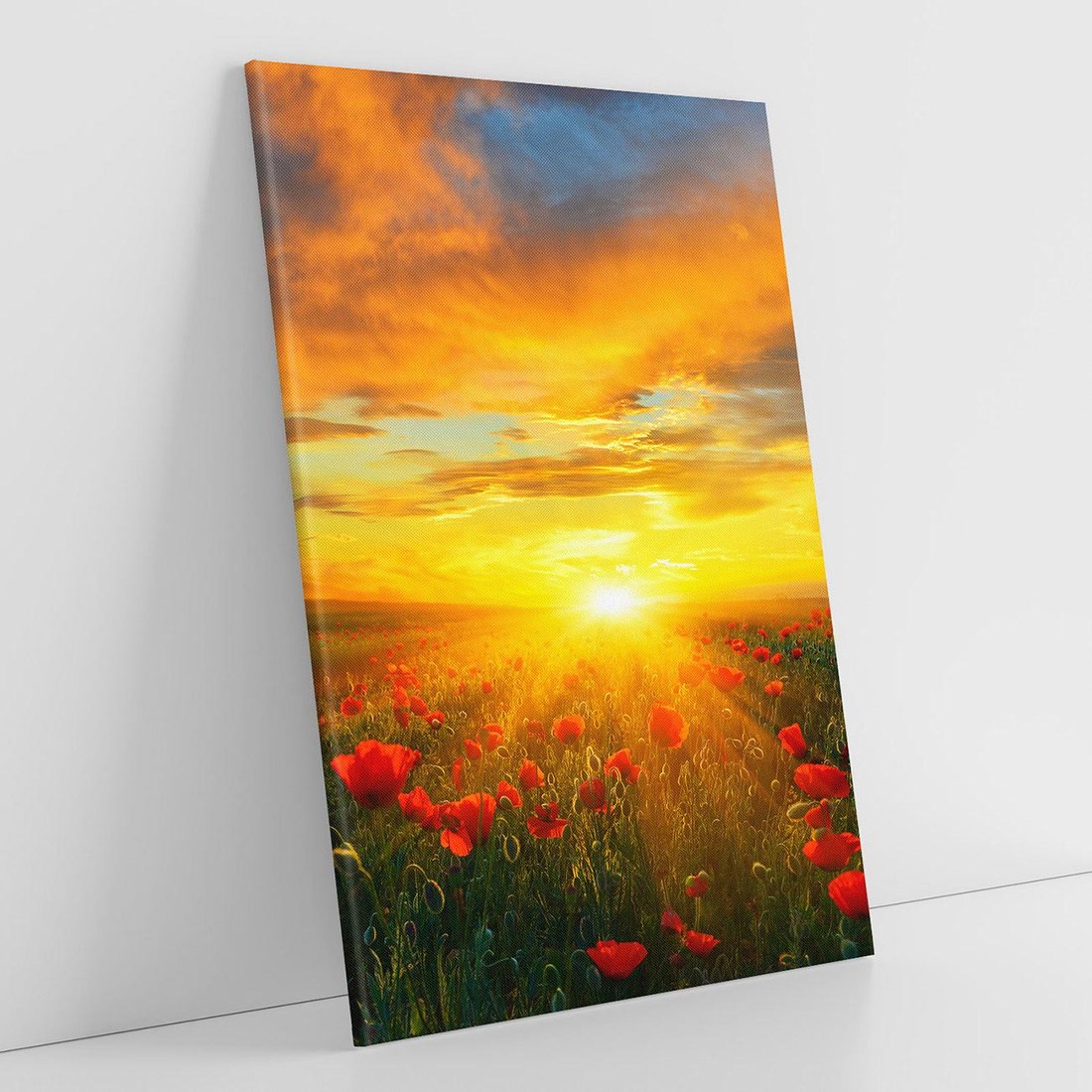 - Obraz na płótnie 50x70 - Magia zachodu słońca na łące z makami