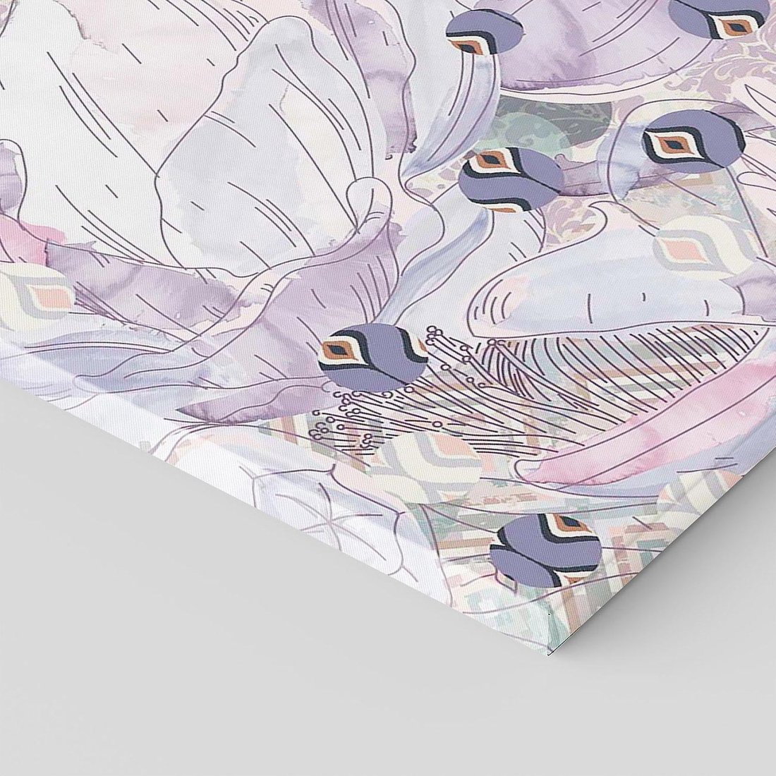 Przenieś się w świat spokoju i glamour z tym wyjątkowym obrazem, na którym tekstury tworzą harmonijną kompozycję. Kwiatowe elementy dodają mu delikatnego uroku. Odcienie różu i fioletu emanują wyrafinowanym stylem. To dzieło sztuki stworzone dla miłośników elegancji i romantyzmu, pragnących wprowadzić artystyczny akcent do swoich wnętrz. Doskonały sposób na podkreślenie estetyki i piękna każdej przestrzeni.