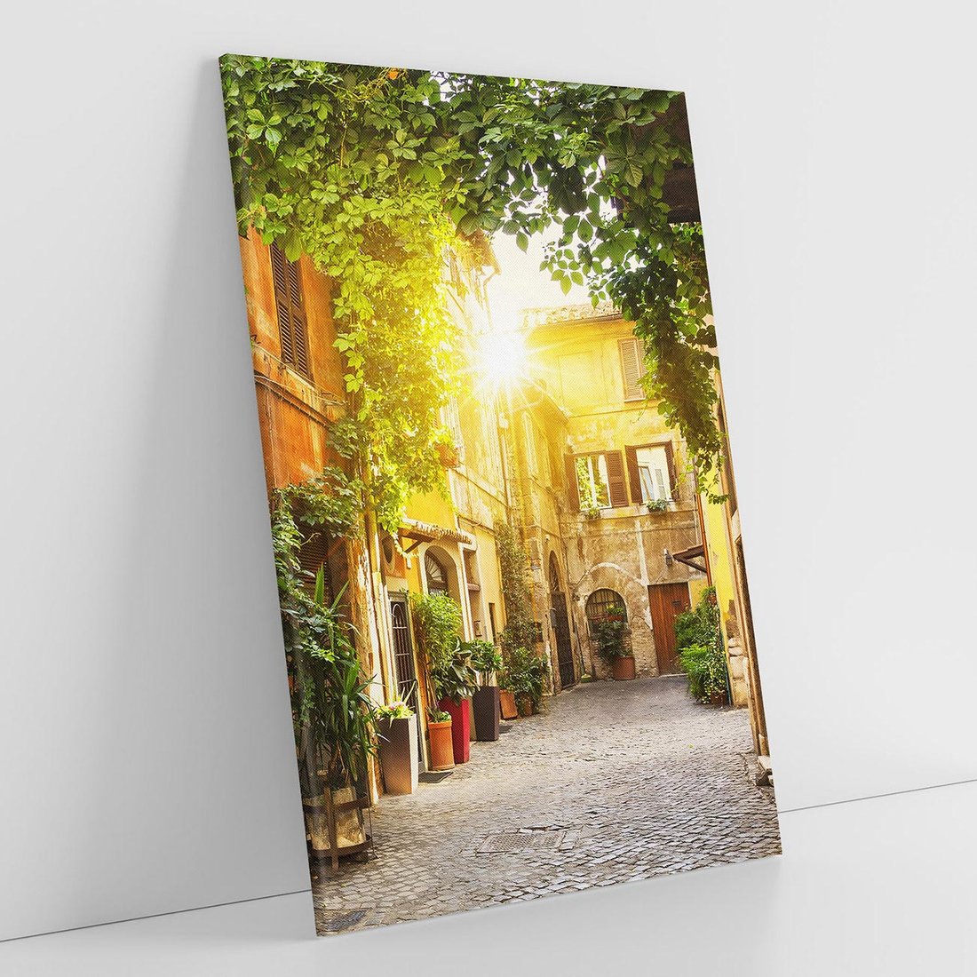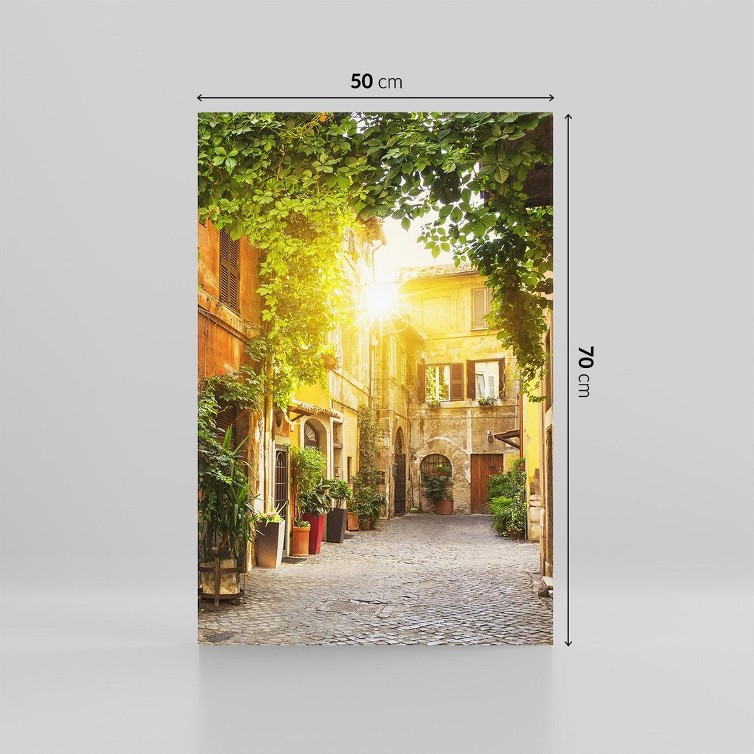 Ta urocza uliczka z głęboką perspektywą na płótnie zaprasza Cię na malowniczą wędrówkę. Odkryj urokliwe zakątki miasta i zanurz się w jego atmosferę. Dodaj uroku i atmosferycznego nastroju do swojego wnętrza.