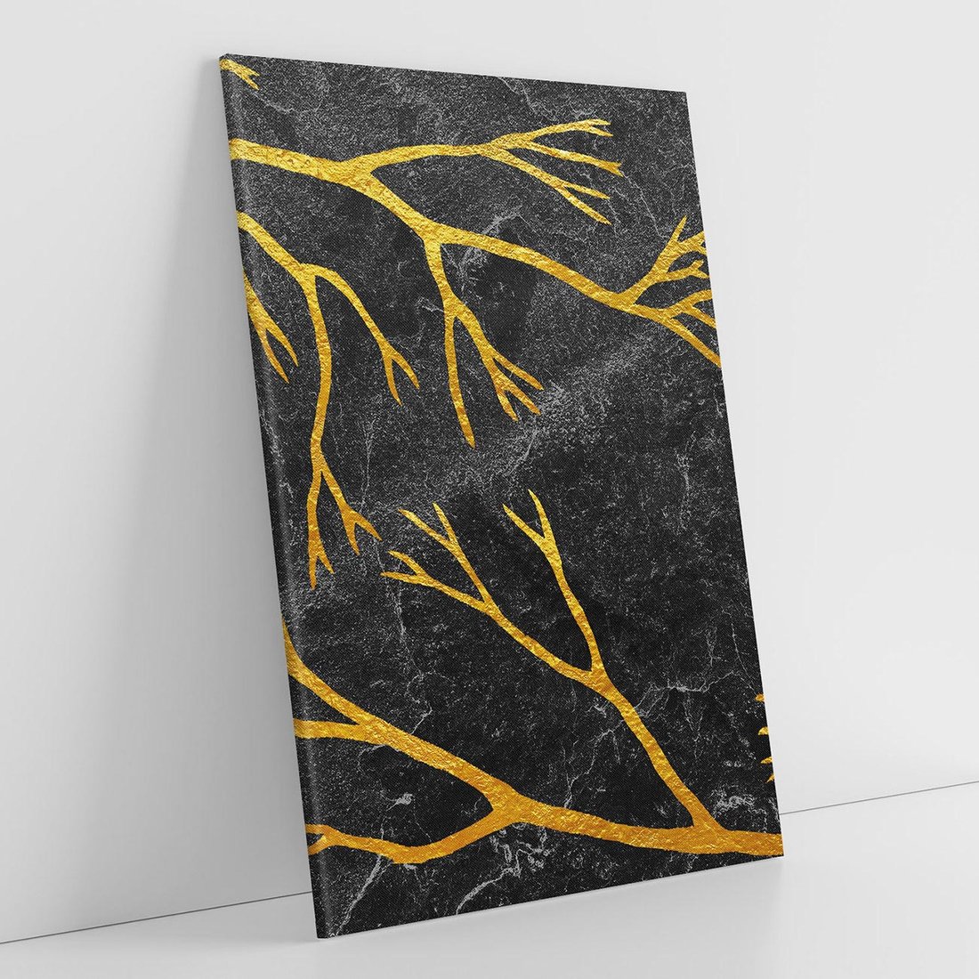 Ten metaforyczny obraz przedstawia złote gałęzie drzew na czarnym marmurowym tle, emanujący elegancją i tajemniczym urokiem. Minimalistyczny design podkreśla wyrafinowany charakter kompozycji. To dzieło sztuki przenosi widza w niezwykłą przestrzeń, gdzie złoto symbolizuje światło i nadzieję w ciemnościach. Idealny dodatek do wnętrz, które pragną zachować wyjątkowy i niezwykły wystrój.