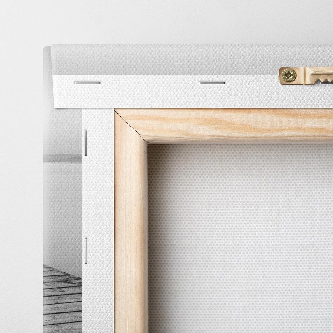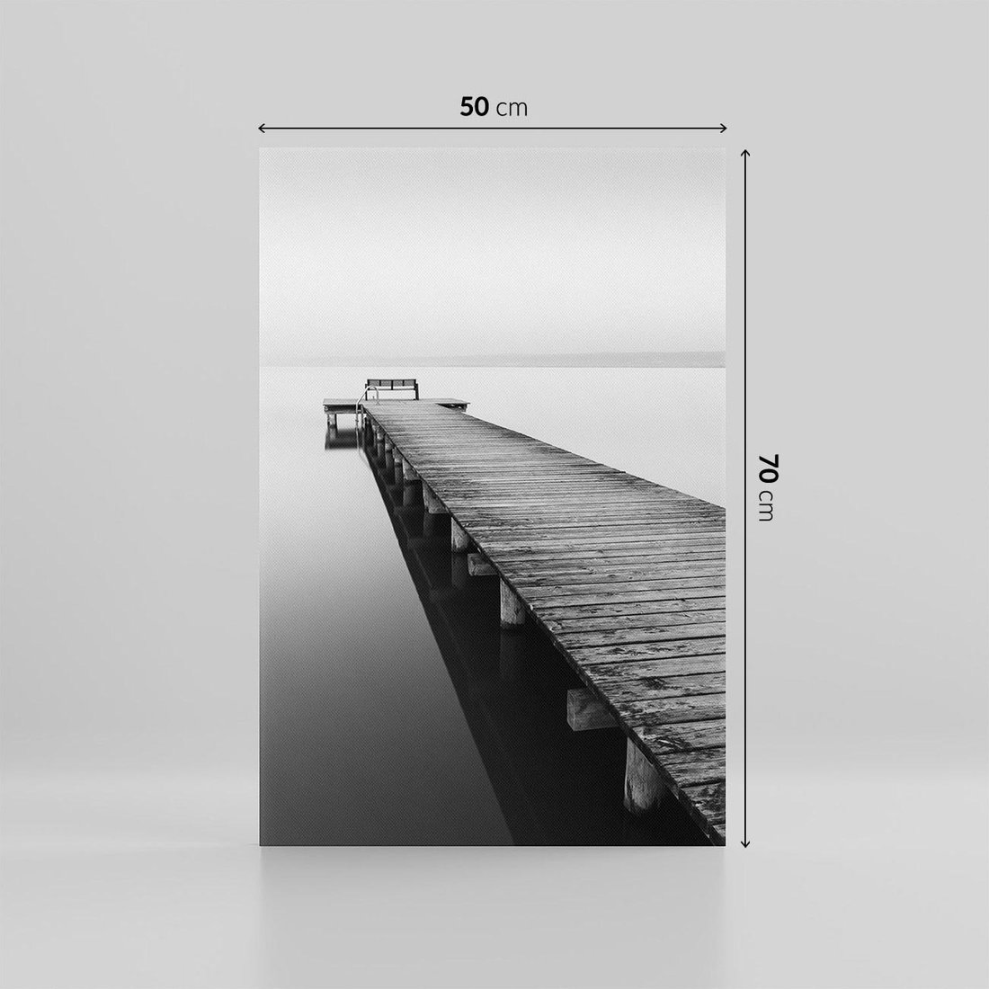 Obraz na płótnie 50x70 - Mglista Perspektywa - czarno biała fotografia, drewniany pomost na jeziorze