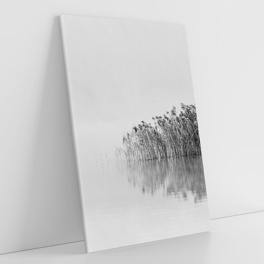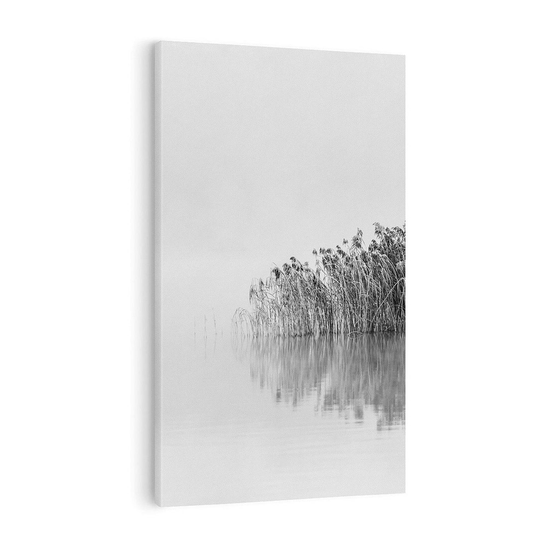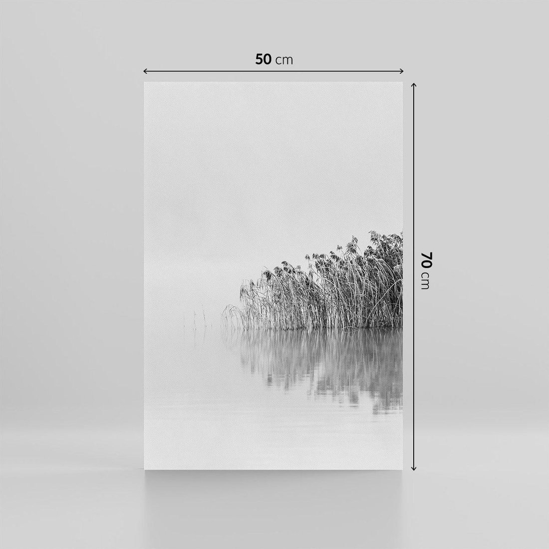 Obraz na płótnie 50x70 - Mglisty Brzeg Jeziora - czarno białe zdjęcie, zamglone jezioro