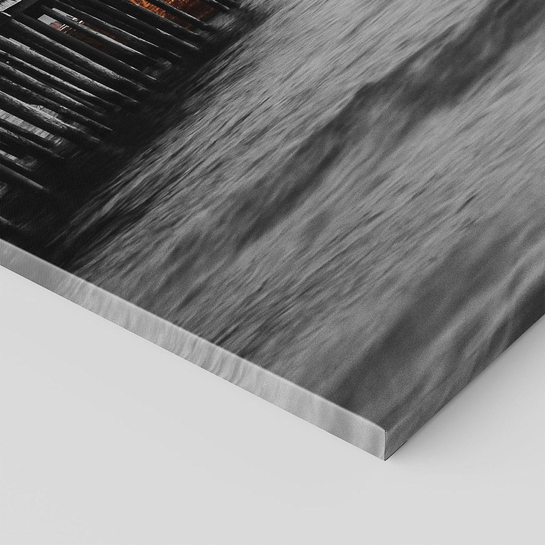 Ten tajemniczy obraz przedstawia molo, gdzie w oddali można dostrzec wrak statku na plaży. Przenieś się w świat tajemnic i historii, dodając nutę morskiego klimatu do swojego wnętrza tym wyjątkowym dziełem sztuki.