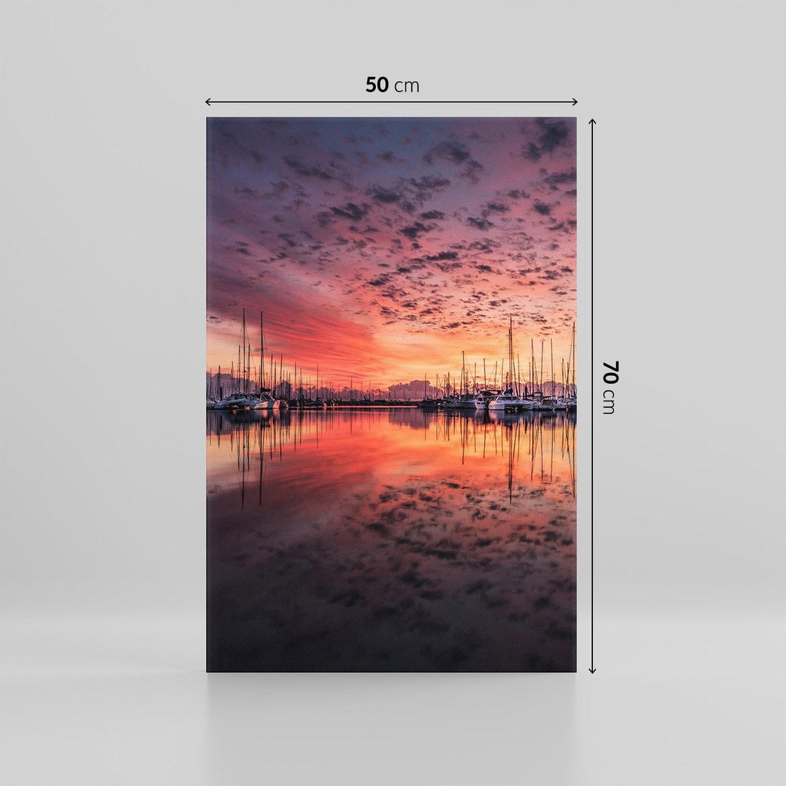 Ten ujmujący obraz przeniesie Cię w magiczny moment zachodu słońca w marinie, gdzie łodzie unoszą się na falach. Ciesz się widokiem odbijającego się światła i atmosfery wieczornego spokoju. Dodaj nutę nadmorskiego uroku i relaksu swojemu wnętrzu tym wyjątkowym dziełem sztuki.
