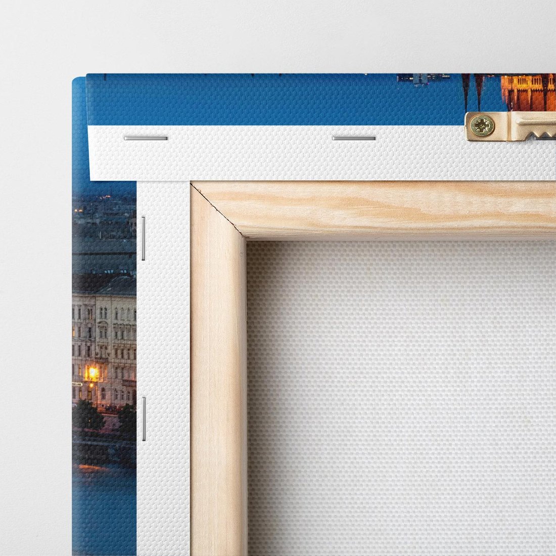 Ta tajemnicza sceneria nocnego miasta przedstawiona na obrazie na płótnie zapewnia niezapomniane wrażenia. Mosty oświetlone w świetle lamp i refleksy wody tworzą atmosferę magii i romantyzmu. Idealny dodatek do nowoczesnych wnętrz.