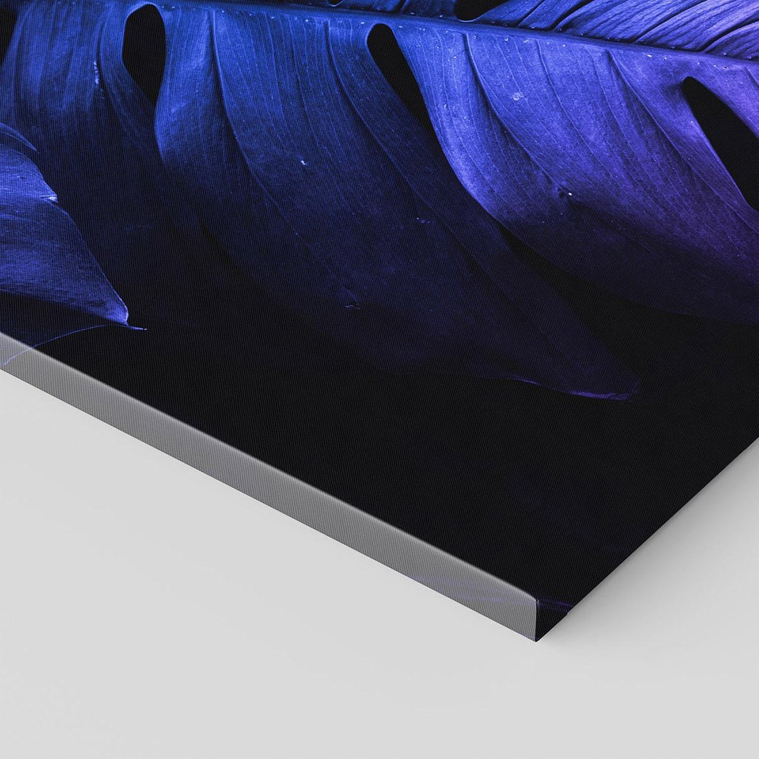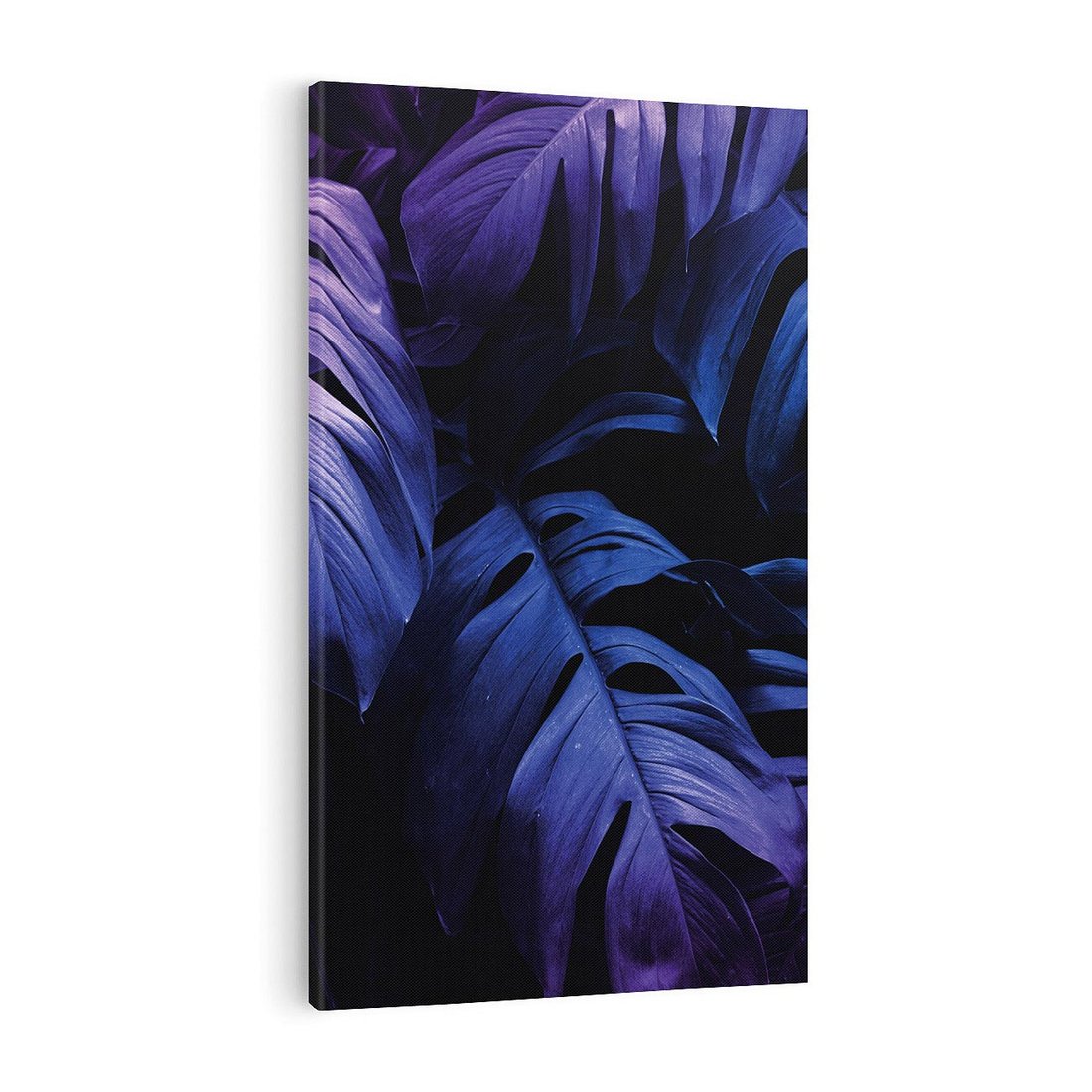 Obraz na płótnie 50x70 - Mroczna Magia Dżungli - mroczna grafika, fioletowe liście monstery na czarnym tle