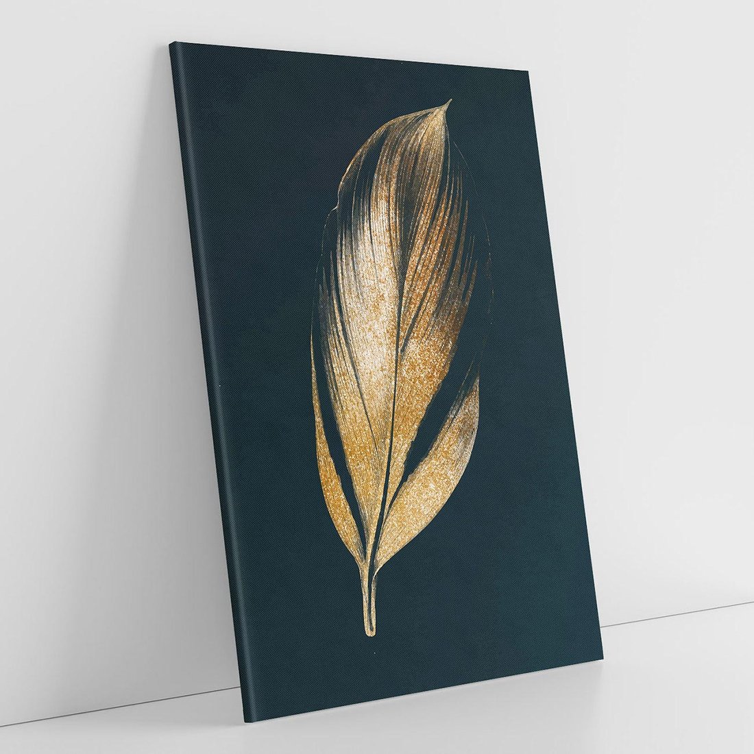 Obraz na płótnie 50x70 - Mroczne Złoto - nowoczesna grafika, złoty liść na czarnym tle