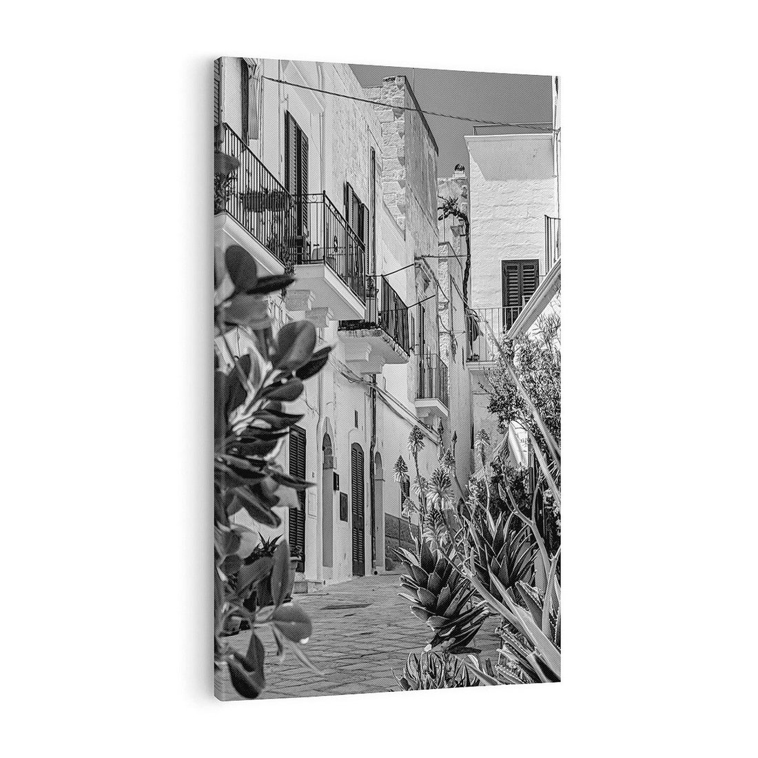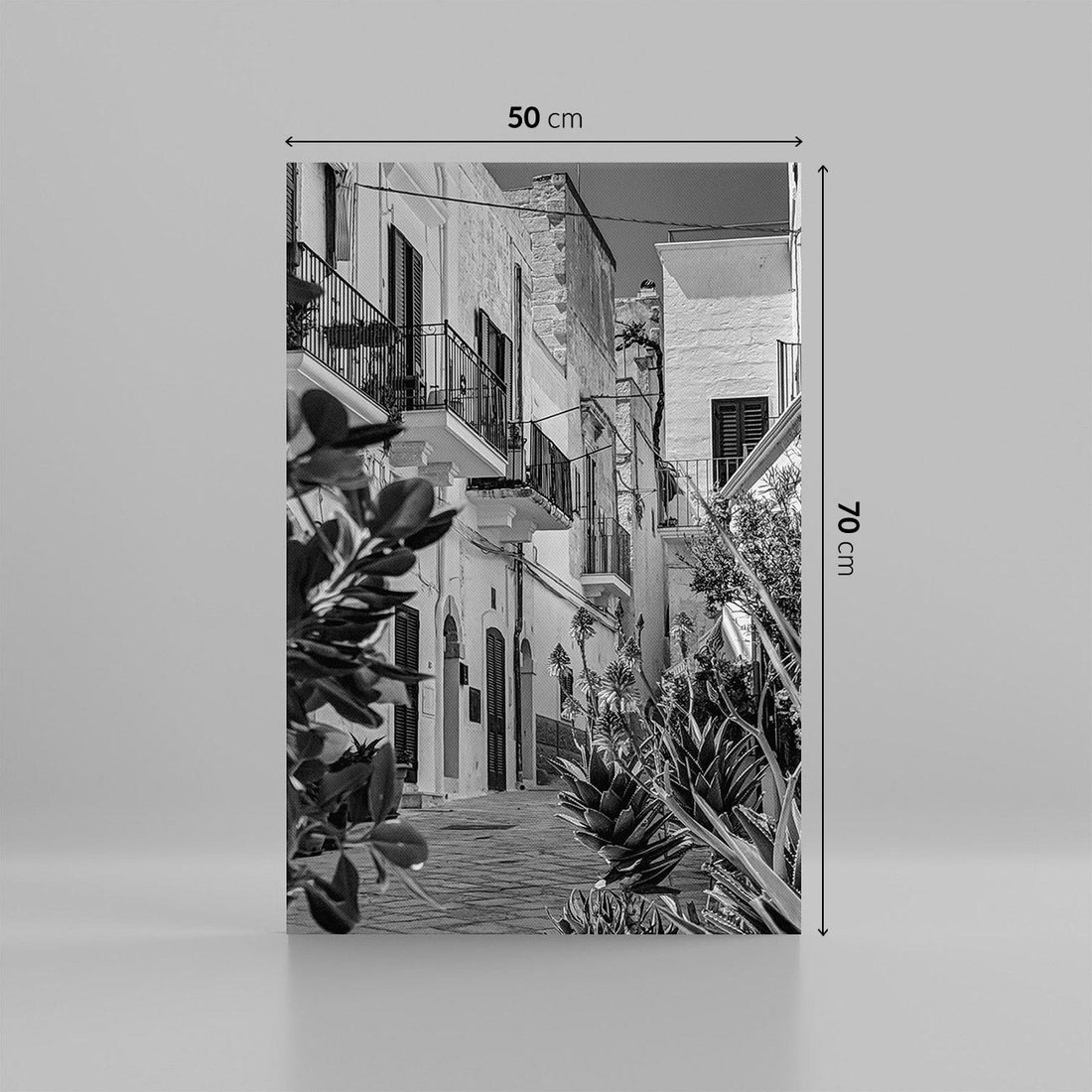 Obraz na płótnie 50x70 - Nadmorska Uliczka - czarno białe zdjecie, uliczka w nadmorskim mieście