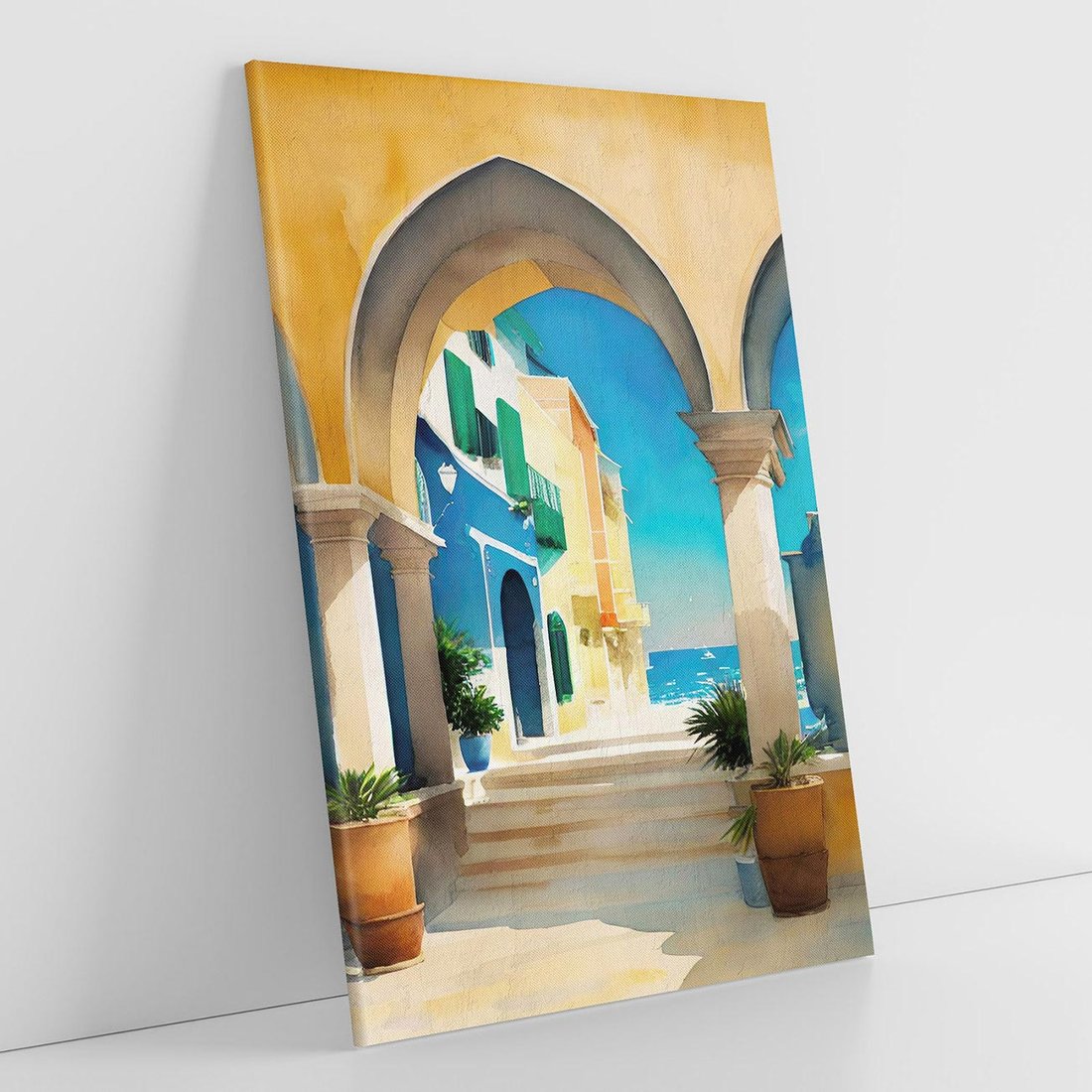 Obraz na płótnie 50x70 - Nadmorskie Łuki - akwarela, śródziemnomorski klimat