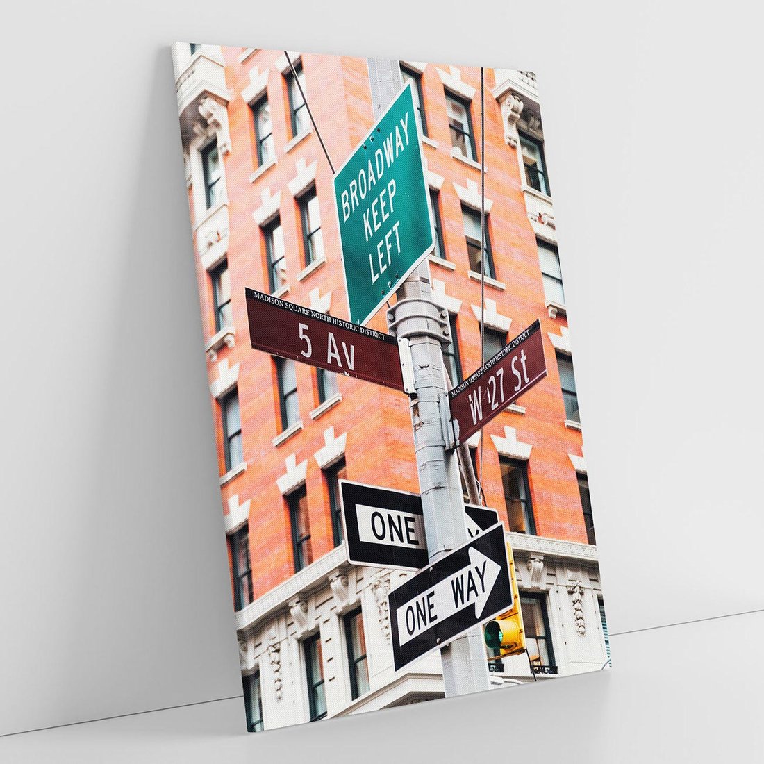 Poczuj atmosferę Nowego Jorku za pomocą obrazu przedstawiającego drogowskaz. Przenieś się w świat metropolii i dodaj do swojego wnętrza nutkę miejskiego stylu.