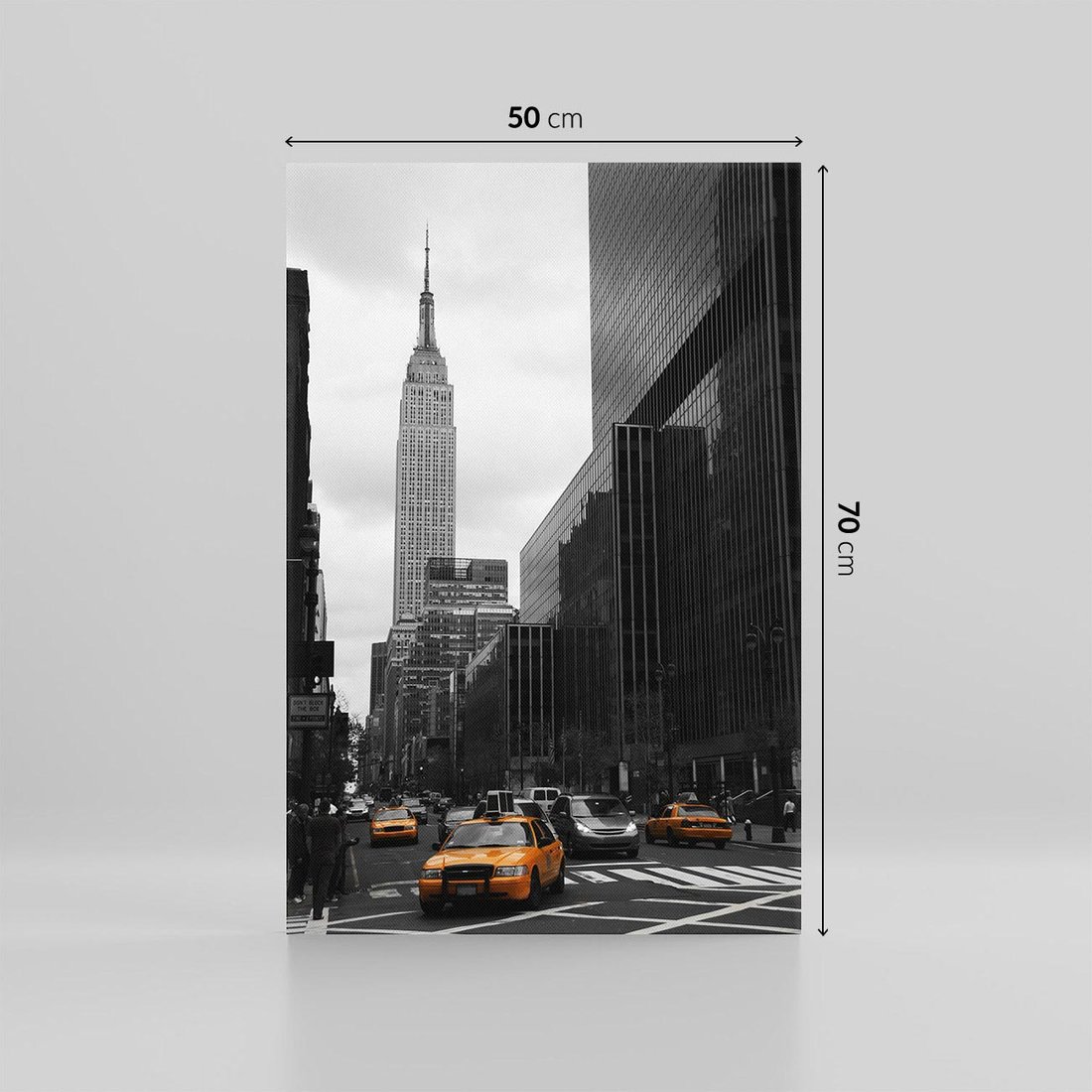 Ten dynamiczny obraz na płótnie przenosi nas do Nowego Jorku, ukazując pełne energii miasto i poruszającą się taksówkę na tle charakterystycznej panoramy.