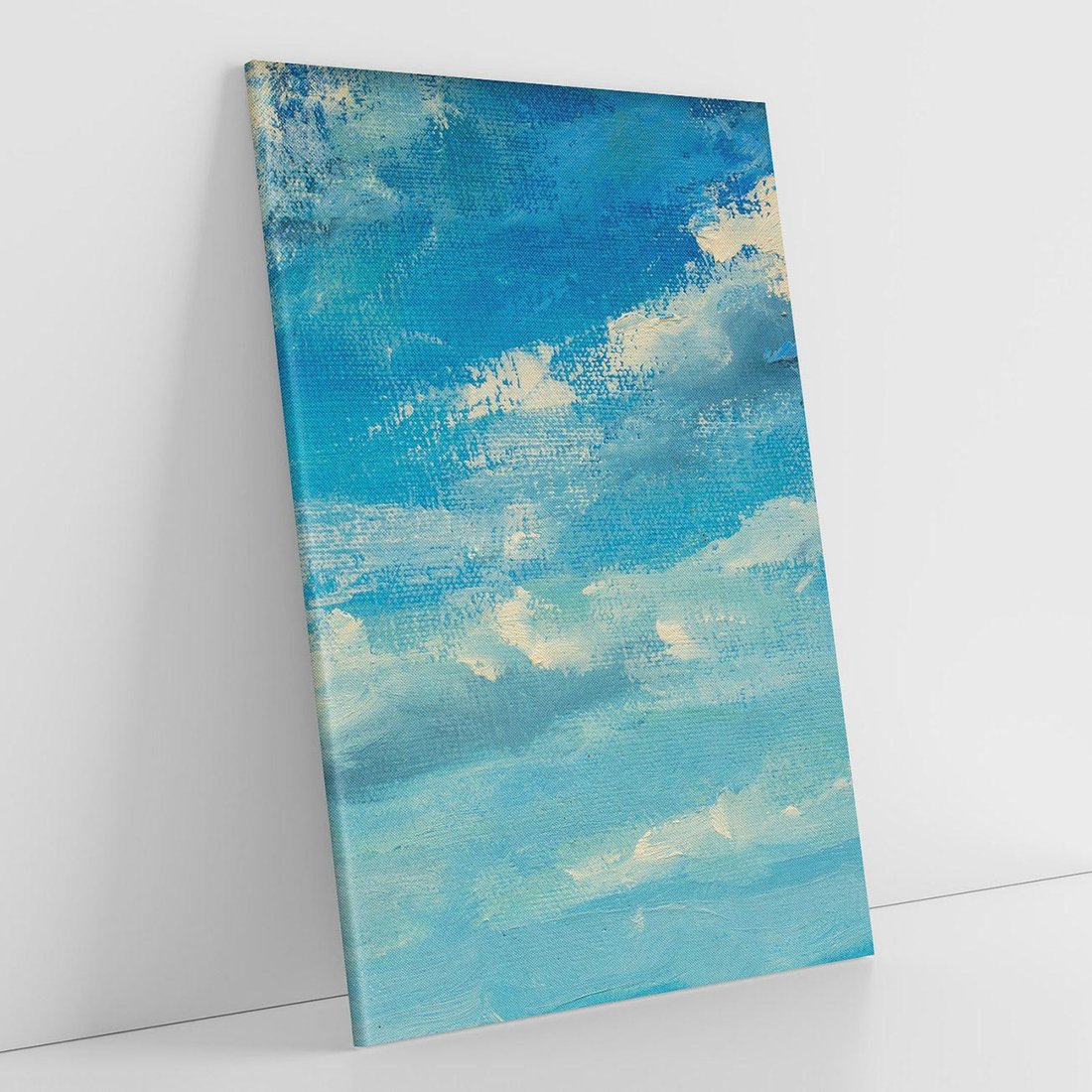 Obraz na płótnie 50x70 - Oddechy niebiańskiej materii - olejny obraz, smugi farby przypominają obłoki na błękitnym niebie