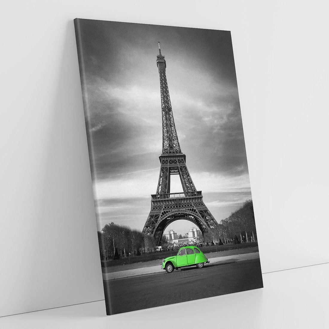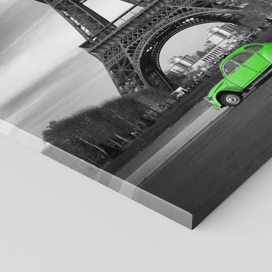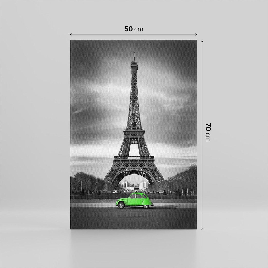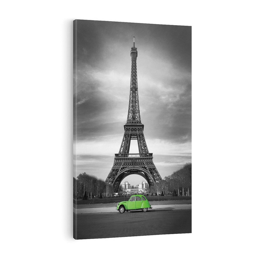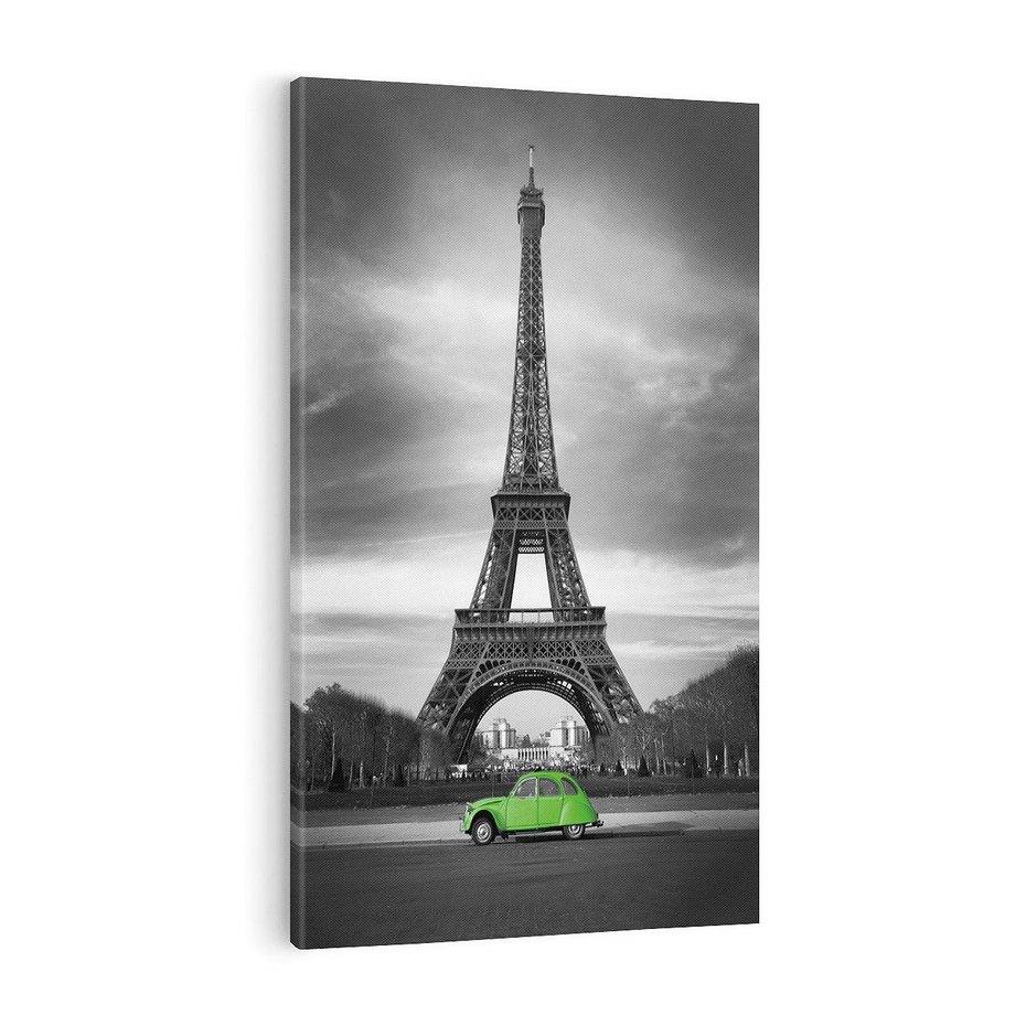 Obraz na płótnie 50x70 - Paryskie Romantyczne Spotkanie - Eiffla, samochód