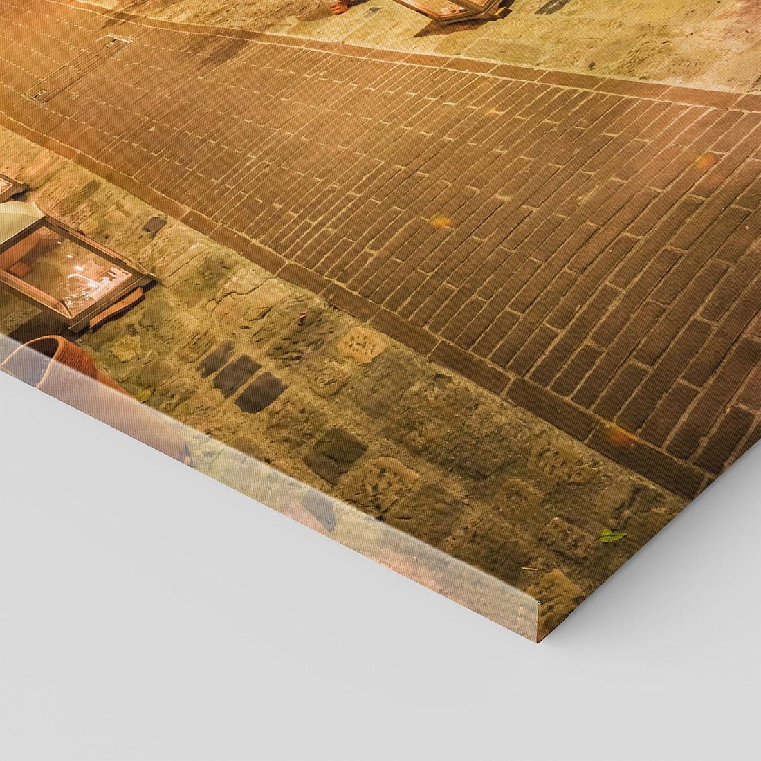 Ten obraz przyciąga wzrok swoją fascynującą perspektywą uliczki. Linie horyzontu i architektura tworzą niesamowitą głębię i dynamikę. Idealny dla miłośników miejskiego klimatu i tych, którzy pragną przenieść się w świat tajemniczych zakątków miasta.