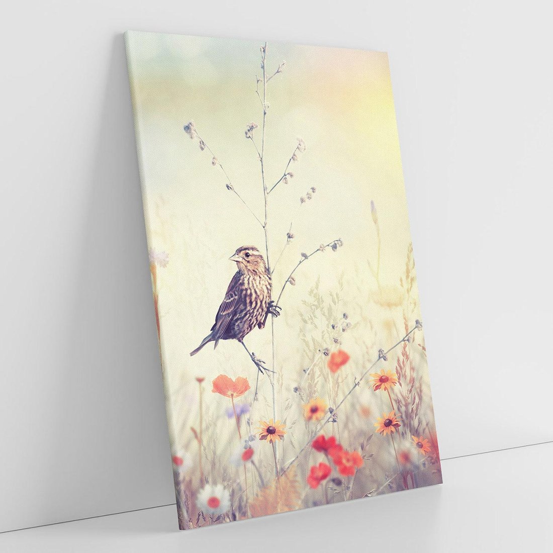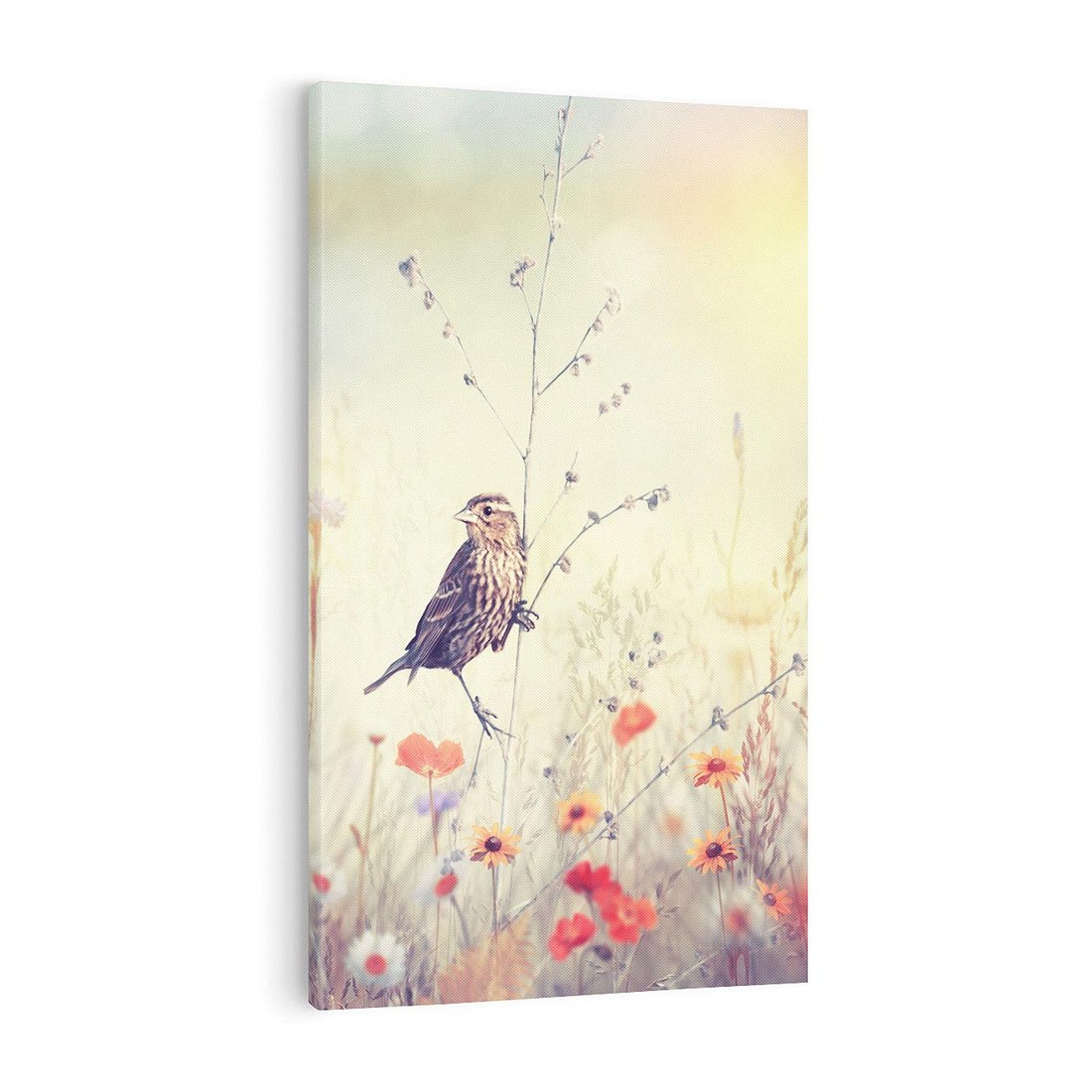 Obraz na płótnie 50x70 - Poranek wśród łąki - ptak, łąka