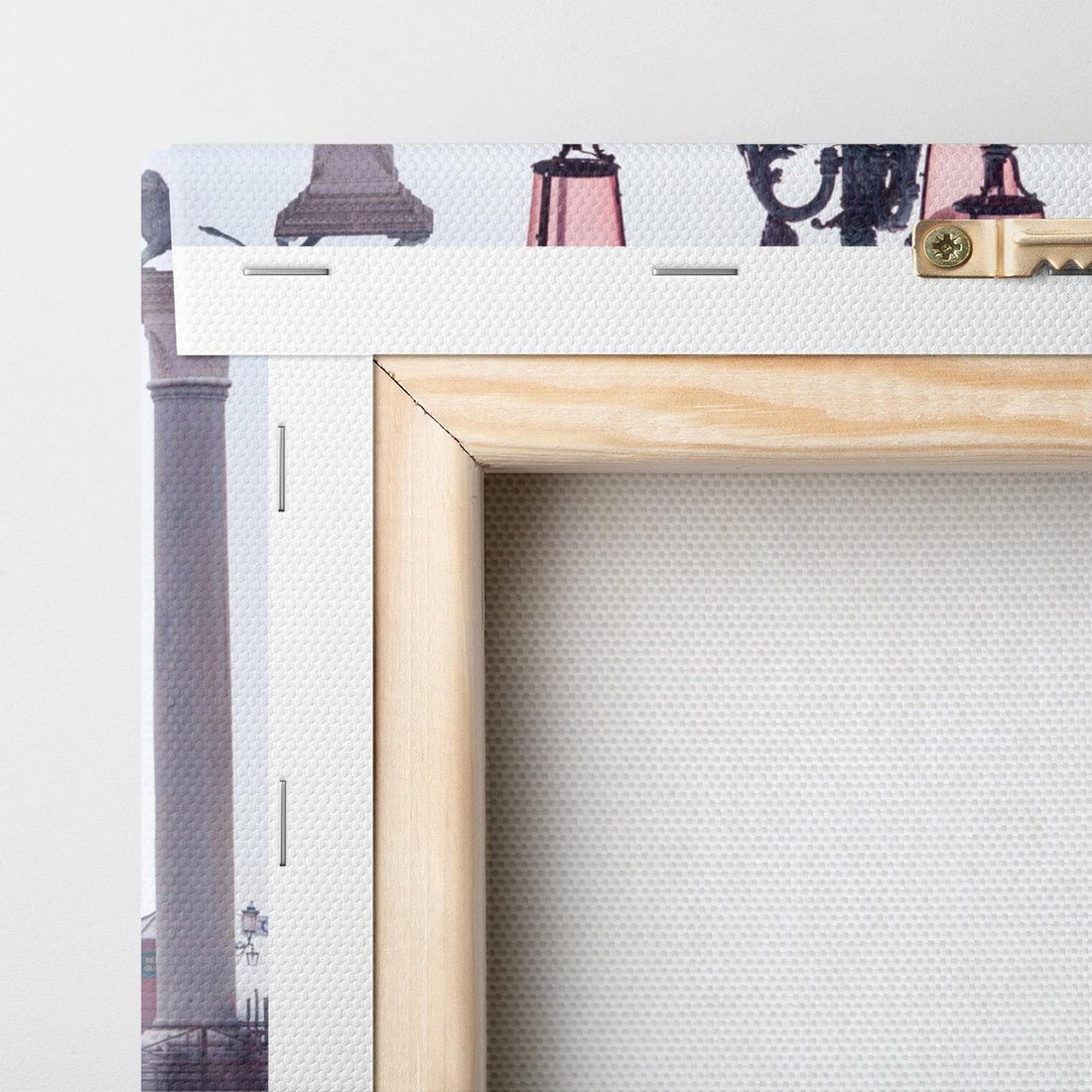 To obraz na płótnie przedstawiający malowniczą uliczkę miasta, otoczoną piękną architekturą. Złociste światło padające na fasady budynków tworzy niepowtarzalny klimat. Artysta zgrabnie oddaje zawiłości uliczki, uwypuklając piękno miejskiego krajobrazu.