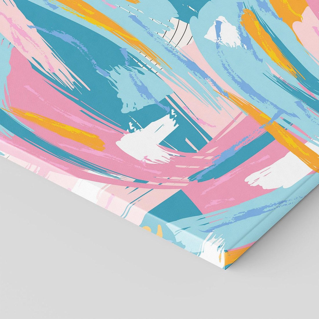 Ten abstrakcyjny obraz emanuje energią poprzez energiczne pociągnięcia pędzla, które tworzą pastelowy chaos barw. Tp dzieło jest niepowtarzalnym wybuchem kreatywności, gdzie swobodne ruchy pędzla przekształcają się w dynamiczną kompozycję, przynosząc unikalny duch i wibracje do przestrzeni.
