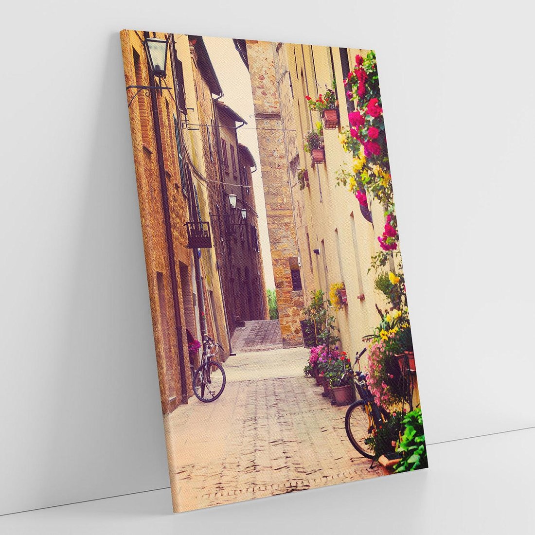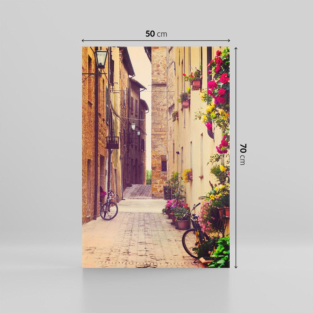 Obraz na płótnie 50x70 - Rowerowa przygoda w uliczkach pełnych perspektywy - uliczka, perspektywa