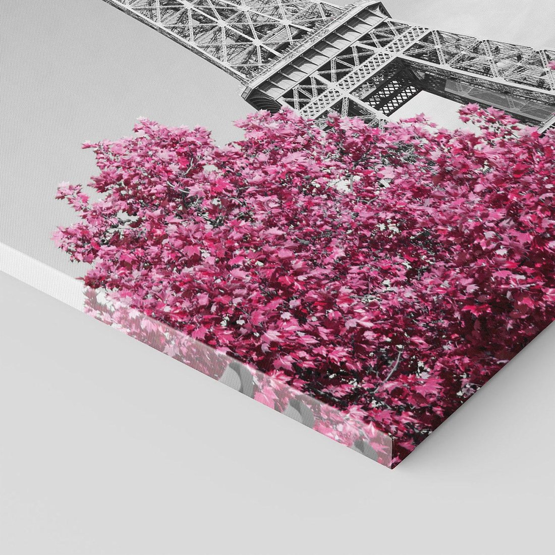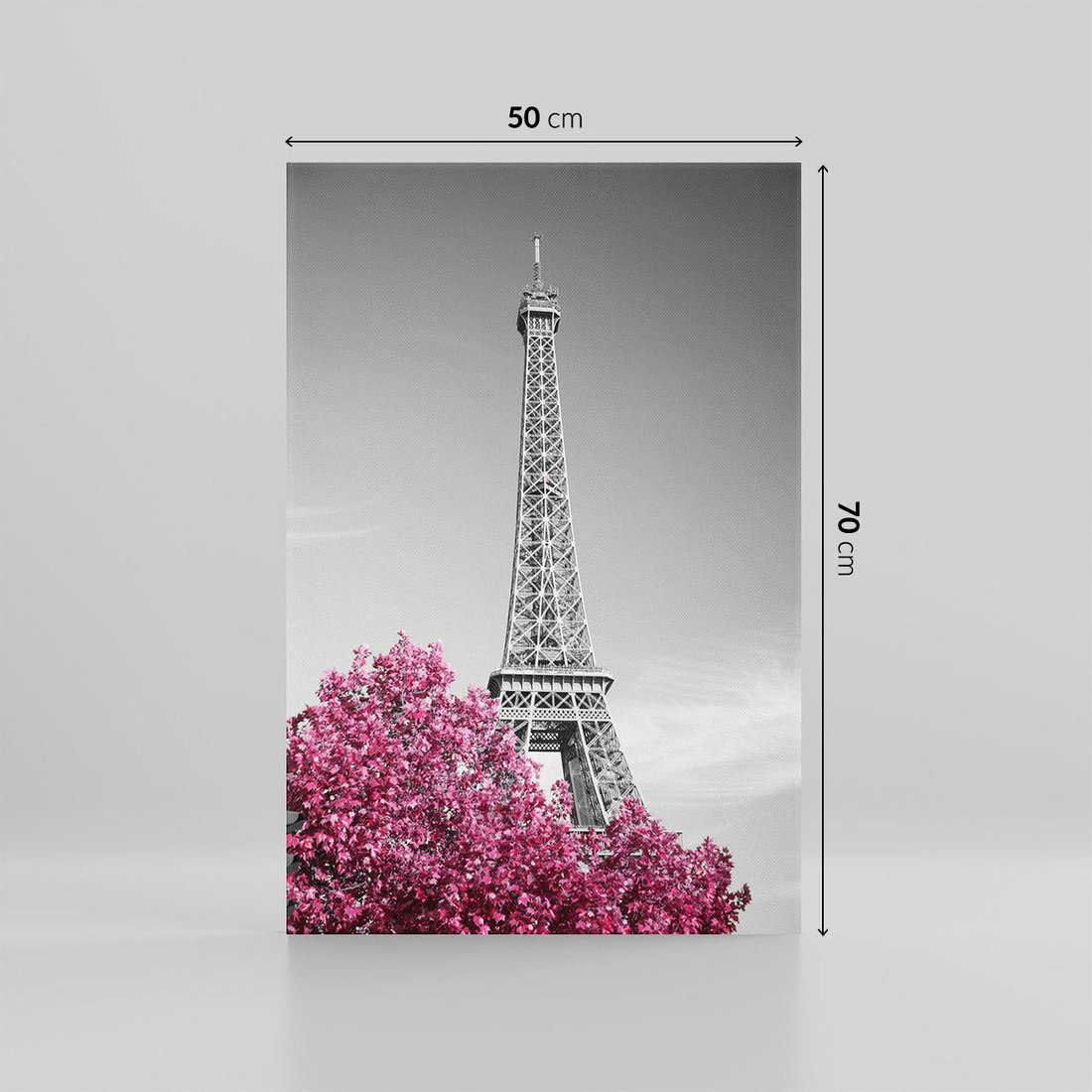 Obraz na płótnie 50x70 - Różowy Paryż - czarno białe zdjęcie, wieża eiffla