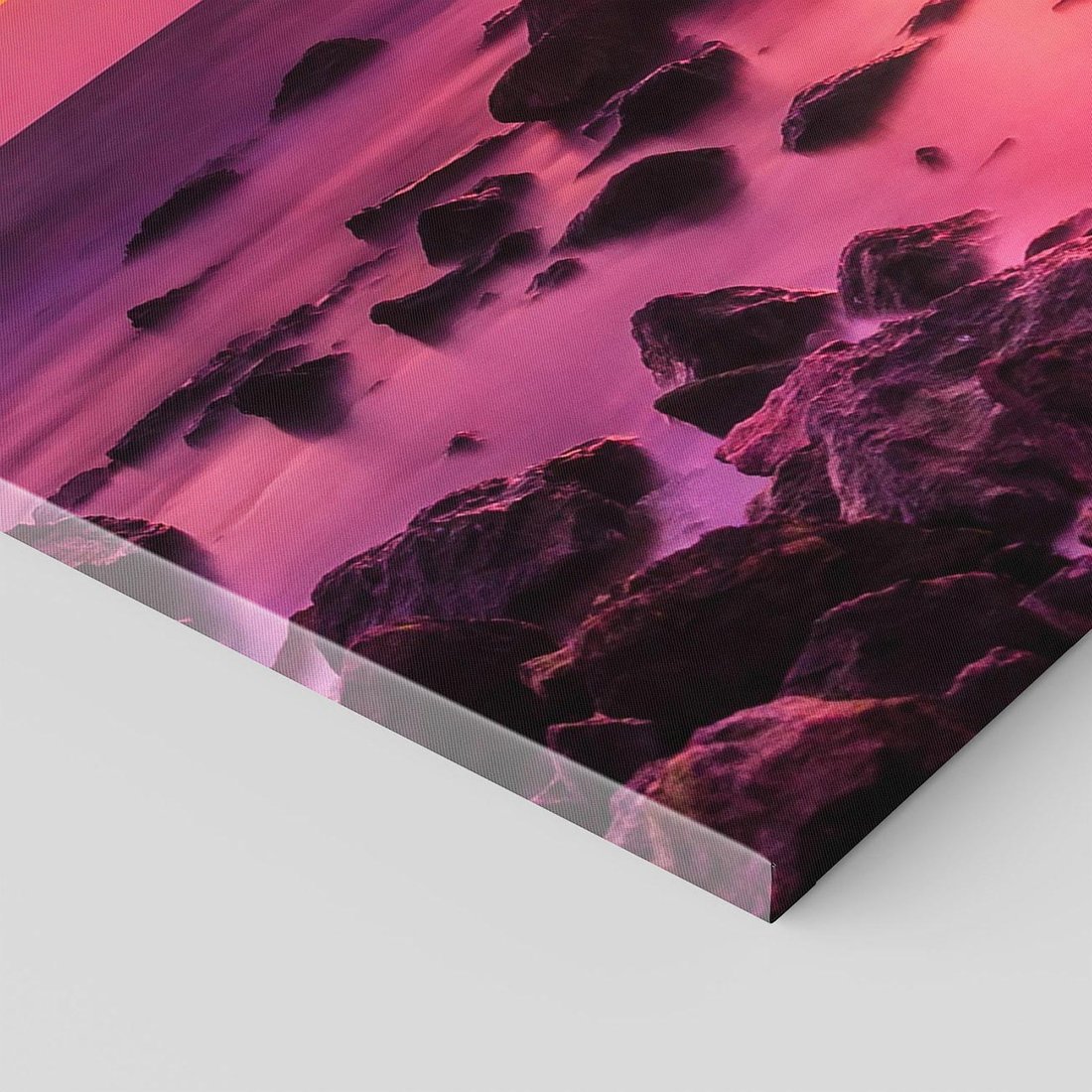 Ten urokliwy obraz przeniesie Cię na brzeg morza, gdzie piękne skały tworzą harmonię z plażą. Ciesz się widokiem ich kontrastu i dodaj odrobinę natury i spokoju do swojego wnętrza tym wyjątkowym obrazem.