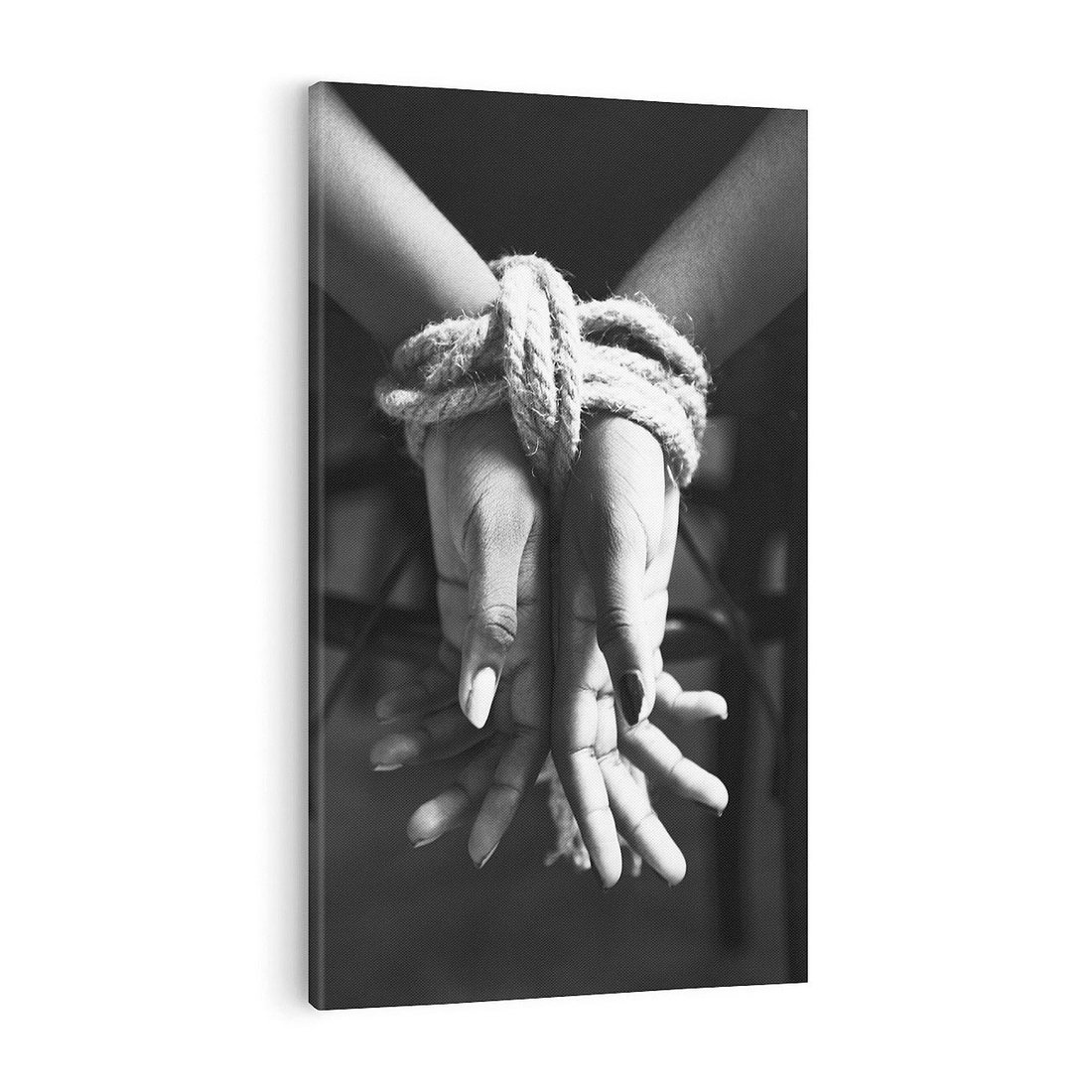 Ta czarno-biała fotografia jest wyrazem artystycznego podejścia do tematu. Zdjęcie przedstawia dwie dłonie, które są związane liną, tworząc nie tylko fizyczne połączenie, ale także symboliczne. To zdjęcie może być interpretowane na wiele różnych sposobów, co czyni je inspirującym i enigmatycznym dziełem sztuki. Czarno-biała paleta kolorów dodaje temu zdjęciu dramatyczności i podkreśla kontrast między dłońmi. To doskonałe zdjęcie do nowoczesnych wnętrz, które cenią sobie abstrakcję i możliwość głębszych refleksji.