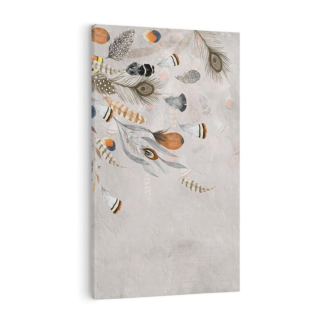 Obraz na płótnie 50x70 - Sploty losu na płótnie - kompozycja boho piór, indiańskie pióra