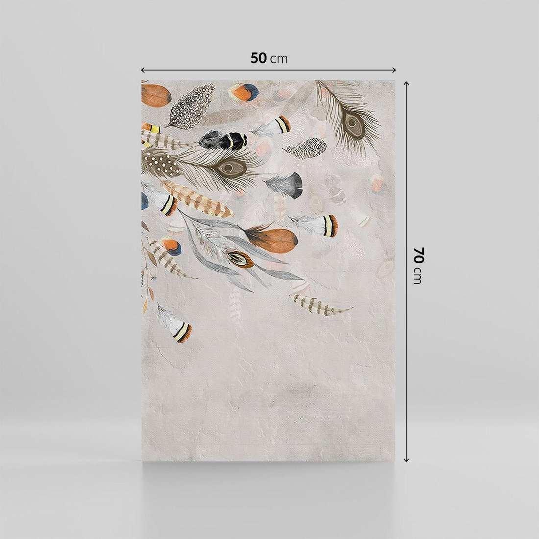 Zachwyć się boho obrazem, który ukazuje harmonijną kompozycję indiańskich piór na szarym betonowym tle. To dzieło sztuki w stylu boho, które przyciąga uwagę swoją naturalną prostotą. Stworzone dla miłośników estetyki boho, pragnących wprowadzić artystyczny akcent i ducha przygody do swoich wnętrz. Doskonały sposób na wzbogacenie przestrzeni o oryginalny, etniczny akcent.