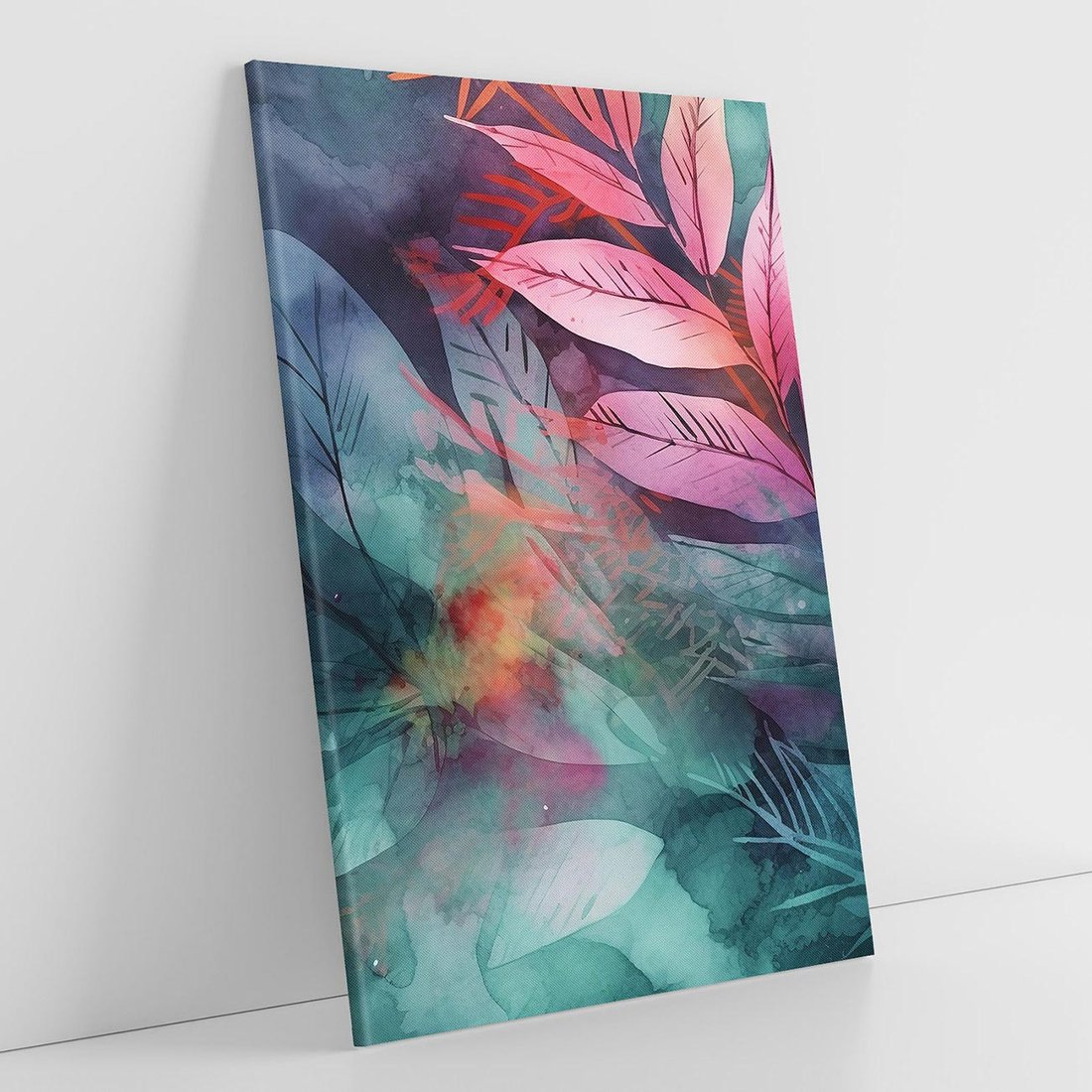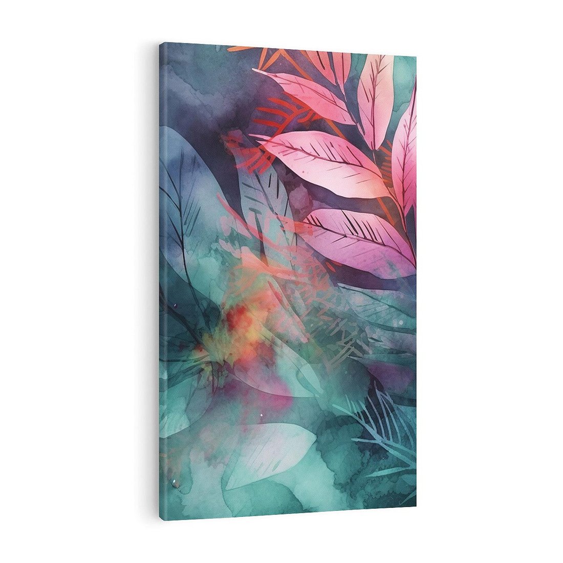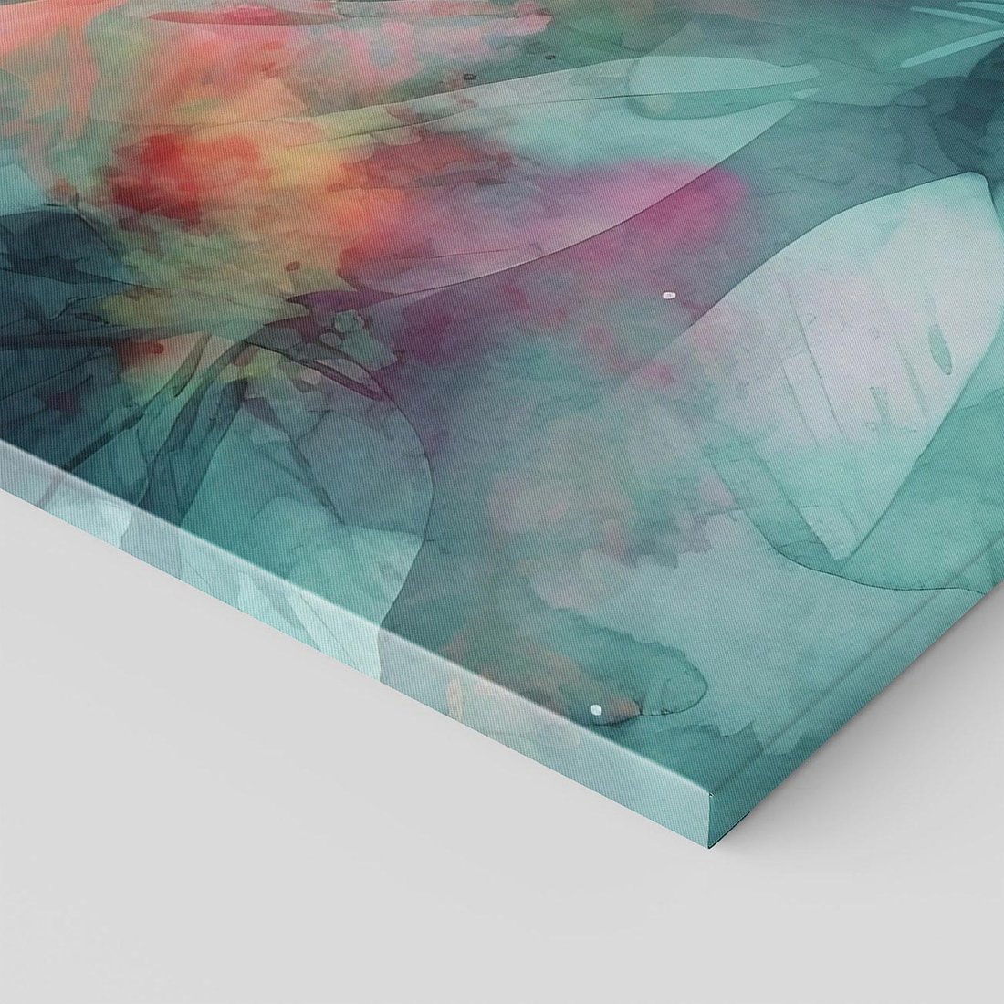 Obraz na płótnie 50x70 - Subtelne Zielone - pastelowe zielone liście, róż