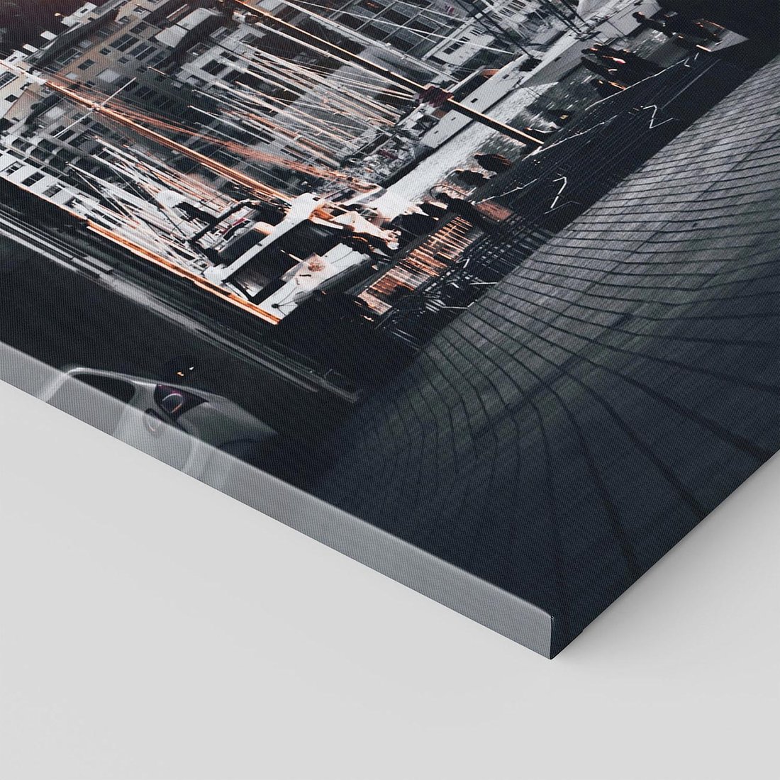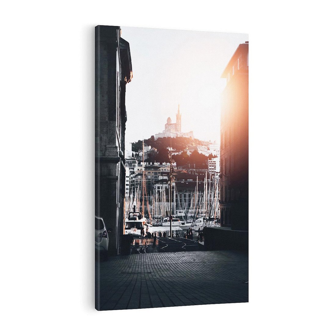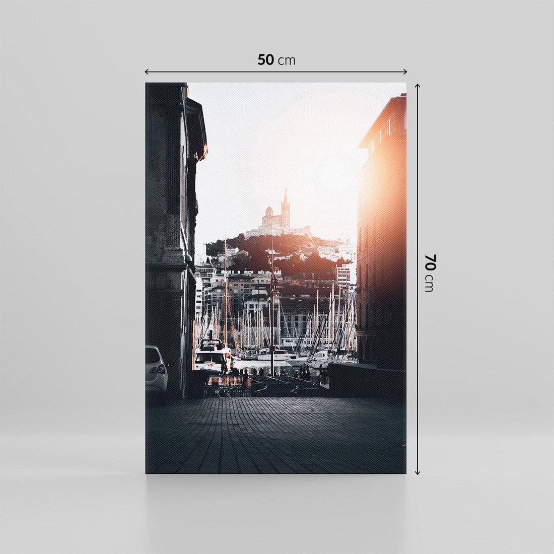 Obraz na płótnie 50x70 - Światło Portowe - czarno białe zdjecie, uliczka w nadmorskim mieście