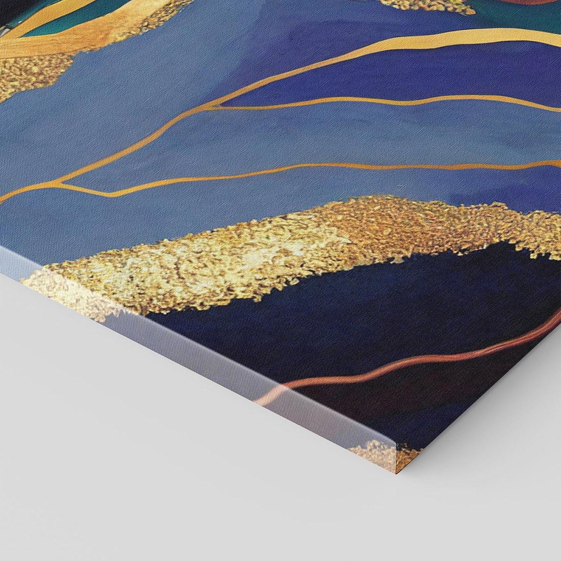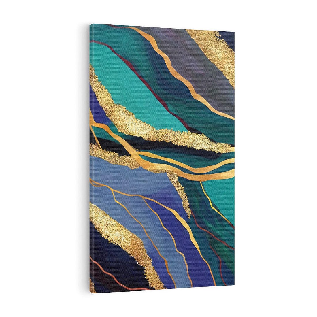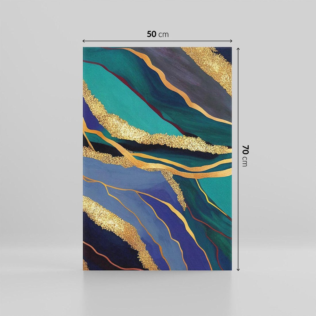 Zachwycaj się abstrakcyjną grafiką inspirowaną marmurem, wzbogaconą o intensywne kolory złota, zieleni i granatu. To wyjątkowe dzieło sztuki, stworzone dla osób ceniących elegancję i nowoczesność. Obraz emanuje luksusowym wdziękiem i będzie doskonałą dekoracją dla miłośników sztuki, pragnących unikalnego akcentu w swoich wnętrzach.