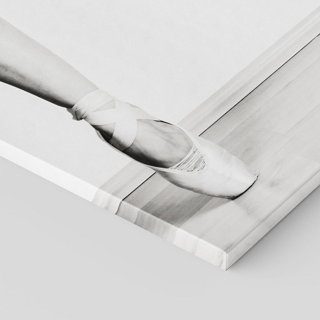 To artystyczne zdjęcie w odcieniach szarości przedstawia ujęcie stóp baletnicy w chwili, gdy ta tańczy na pointach. Zbliżenie na te delikatne i wyraziste detale tworzy wyjątkową atmosferę. To doskonały wybór dla miłośników sztuki i baletu, którzy chcą wprowadzić do swojej przestrzeni subtelność i elegancję. Zdjęcie oddaje piękno i wyrafinowanie chwili tańca.