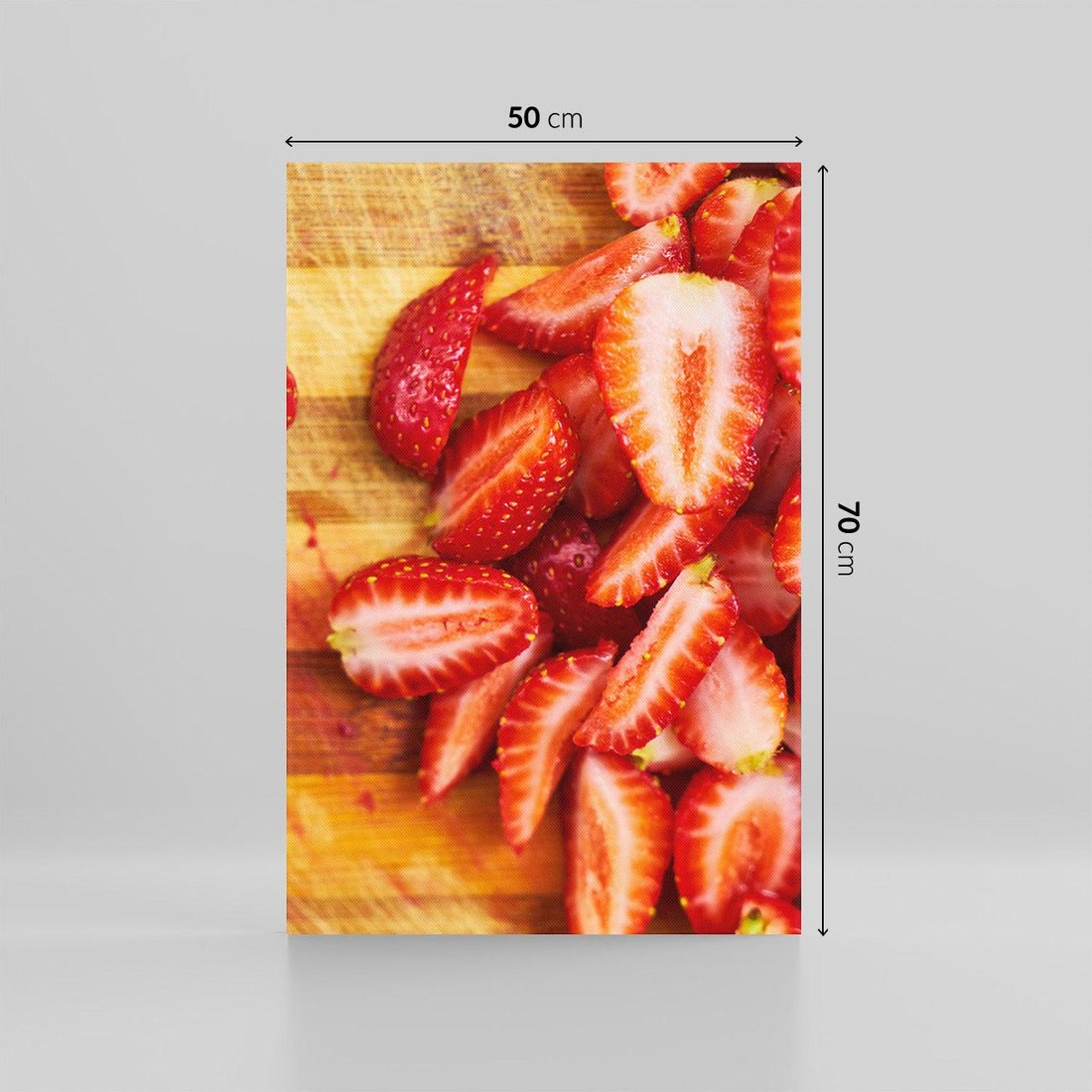 Przenieś się w atmosferę letnich owoców dzięki temu apetycznemu obrazowi przedstawiającemu truskawki. Intensywny kolor, soczystość i świeżość tworzą smakowitą aurę. Ten obraz dodaje radości i pyszności, idealny dla miłośników owoców i wakacyjnych akcentów w aranżacji wnętrza.