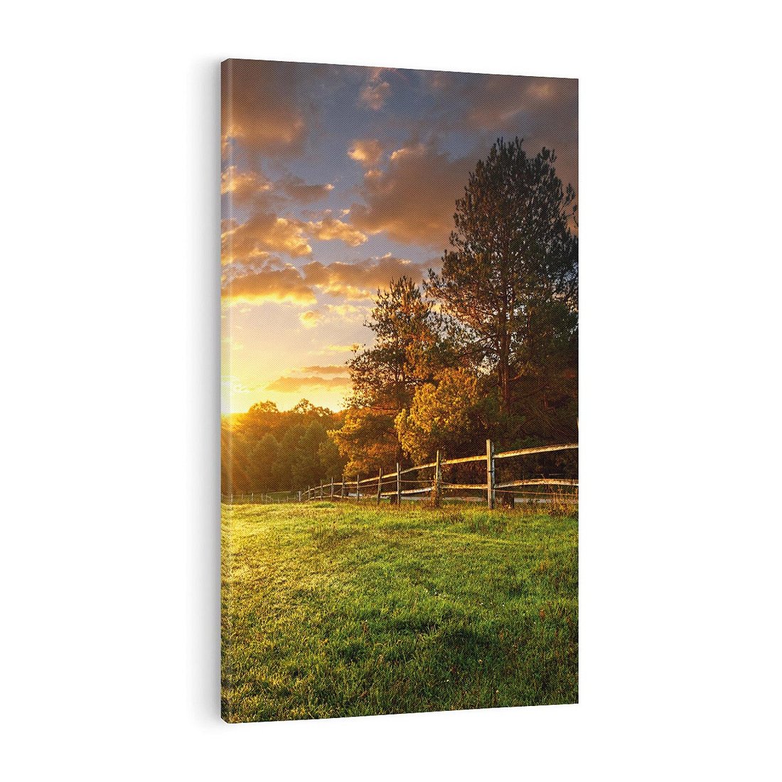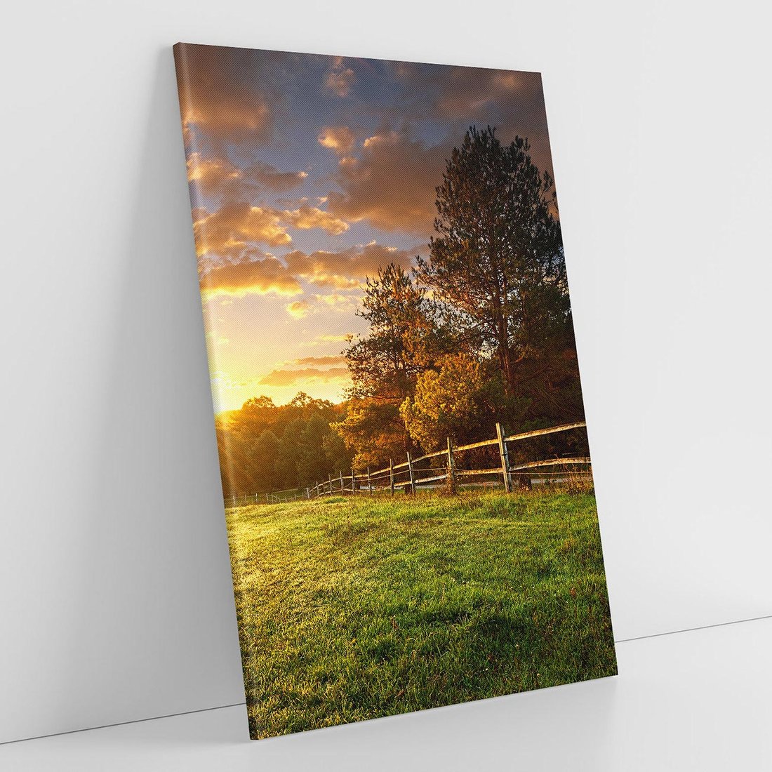 - Obraz na płótnie 50x70 - Urok zachodu słońca na łące z drzewami
