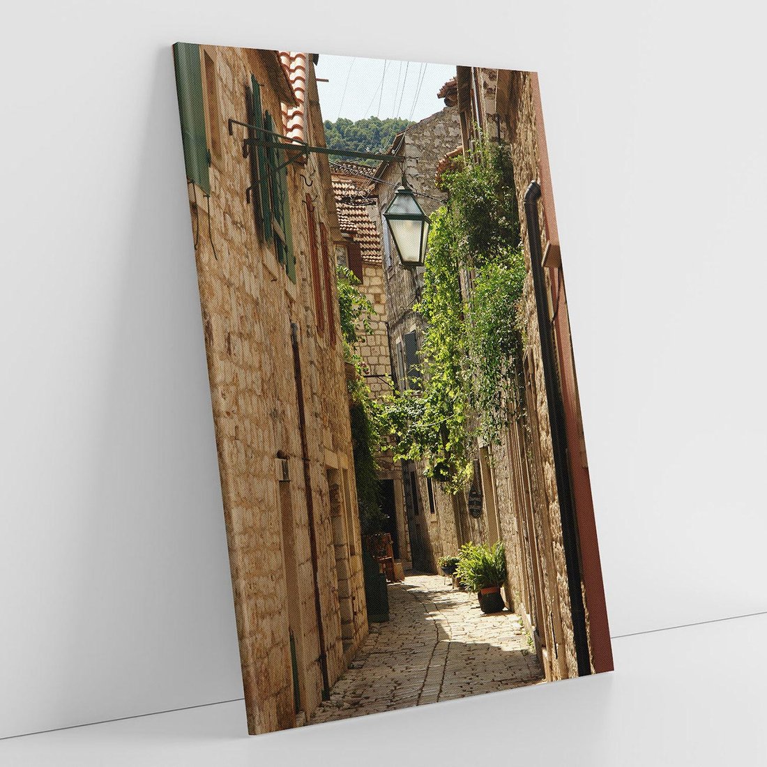 Odkryj urok Włoch dzięki temu ujmującemu obrazowi na płótnie. Przedstawia on wąską uliczkę, wypełnioną kolorowymi budynkami i rustykalnym urokiem włoskiej architektury.