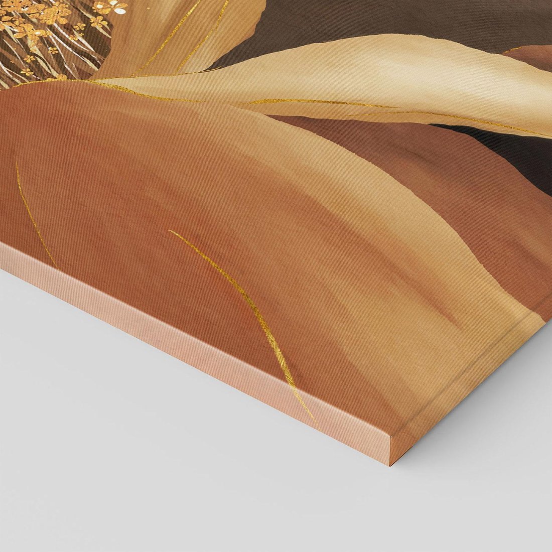 Dodaj wyrazu luksusu do swojego wnętrza za pomocą obrazu przedstawiającego sztukę nowoczesną w złocie. Poczuj elegancję i prestiż, jakie przyniesie ta malownicza kompozycja do Twojego domu.