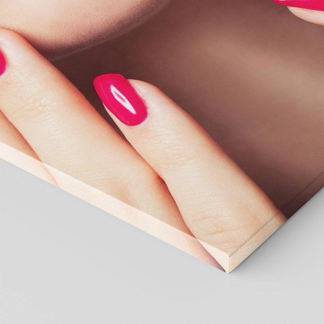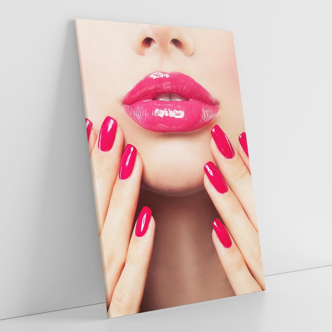 Ten stylowy obraz przedstawiający paznokcie, usta i makijaż wprowadzi do Twojego wnętrza wyrażenie piękna i indywidualności. Ciesz się subtelnością detali i dodaj wyrazistości do swojego wnętrza.