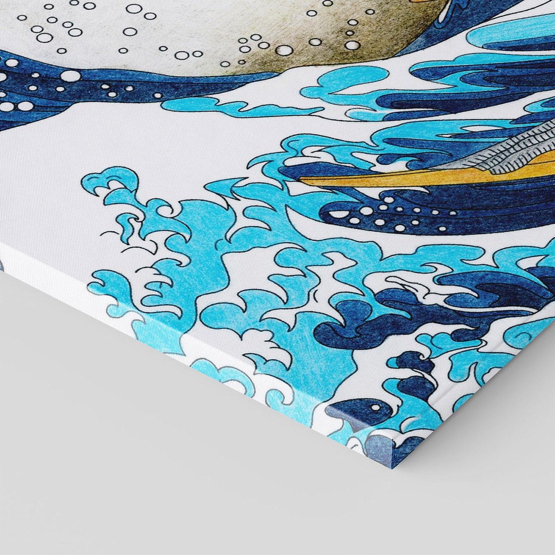 To obraz inspirowany japońskim mistrzem Hokusai, przedstawiający wielką falę w Kaganawie. Morska fala ukazuje potęgę natury i jej dynamiczną piękność. To artystyczne dzieło oddaje wyjątkową atmosferę i wdzięk japońskiej sztuki, przyciągając wzrok i przenosząc widza w fascynujący świat morskich żywiołów.