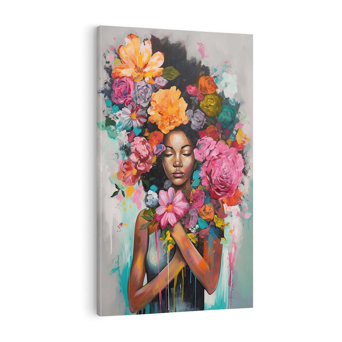 Obraz na płótnie 50x70 - Z Głową w Kwiatach - obraz olejny, sztuka nowoczesna