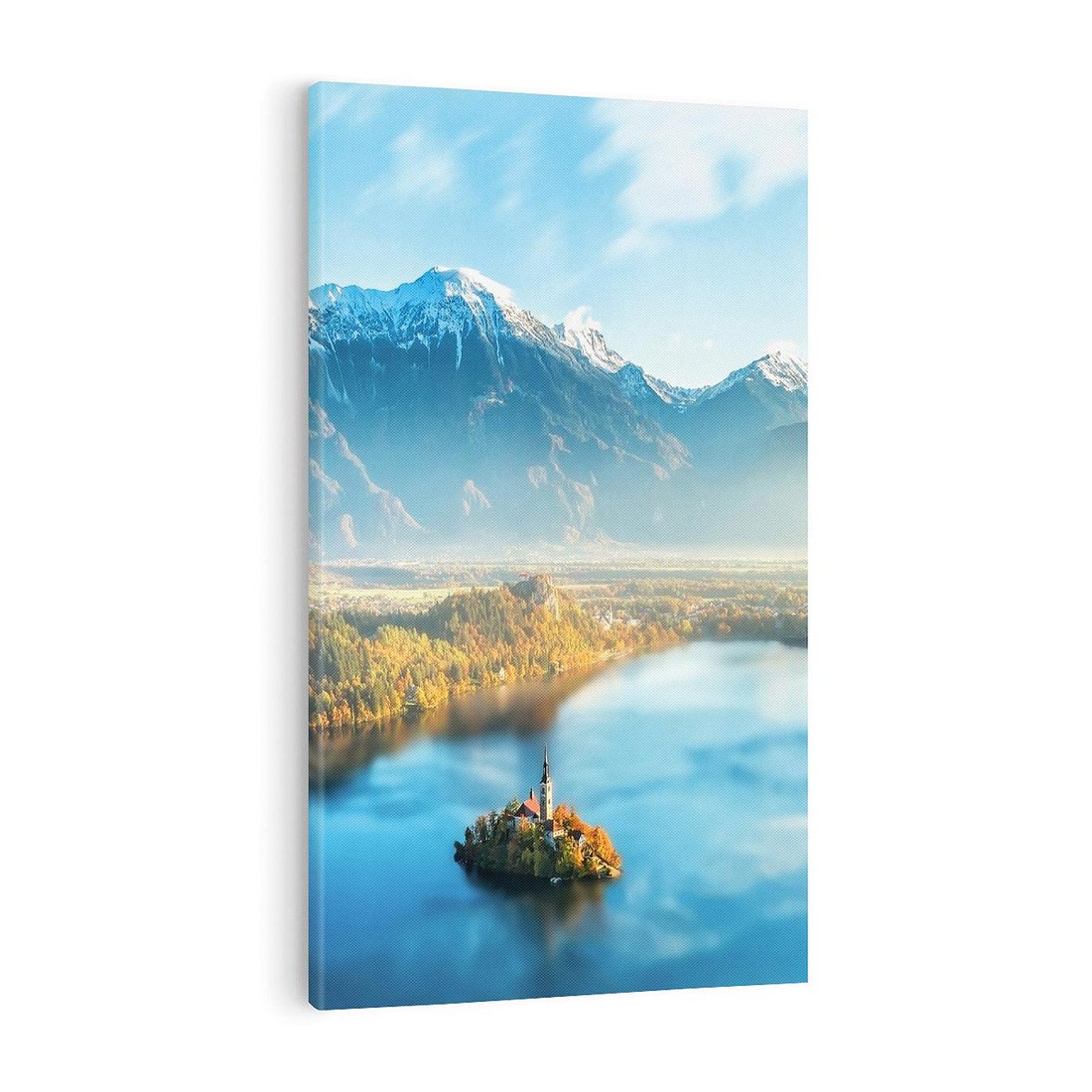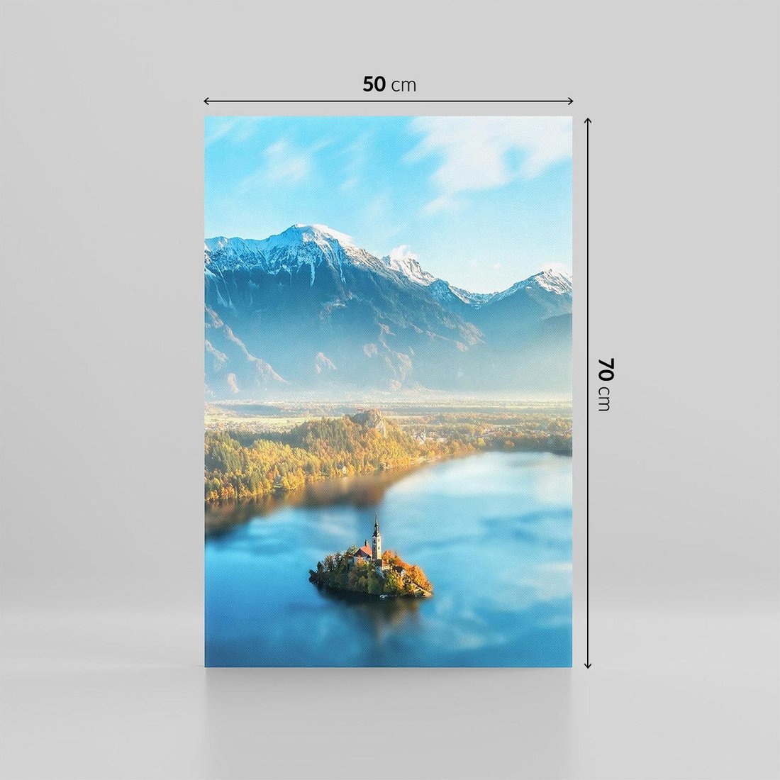 Obraz na płótnie 50x70 - Zamek pośrodku jeziora - jezioro, góry