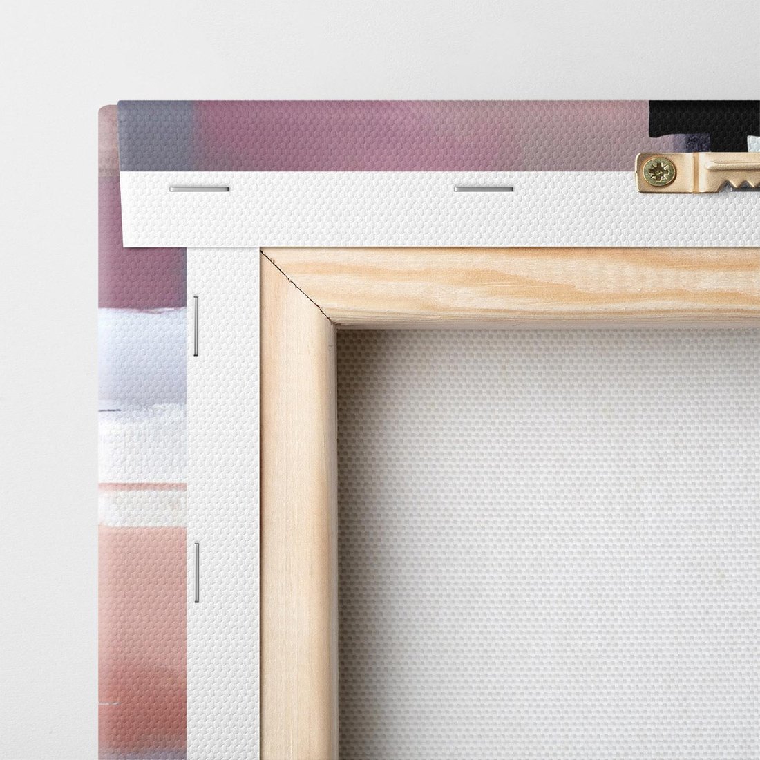 To abstrakcyjne dzieło na płótnie, wykonane techniką olejną, zachwyca bogactwem zamglonych rozmytych kolorów. Kontrastowy czarny akcent przeplata się z delikatnymi pionowymi i poziomymi pasami, tworząc fascynujący efekt przestrzeni i głębi. To wyjątkowe dzieło sztuki ożywi każde wnętrze, wzbudzając ciekawość i zachwyt.