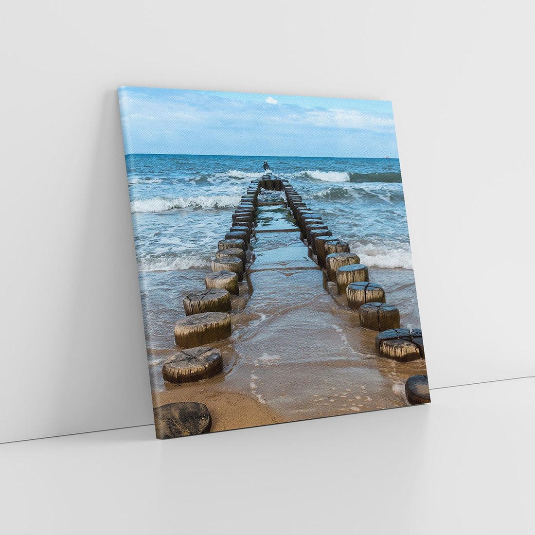Obraz na płótnie 60x60 - Falochron na brzegu morza - falochron, morze