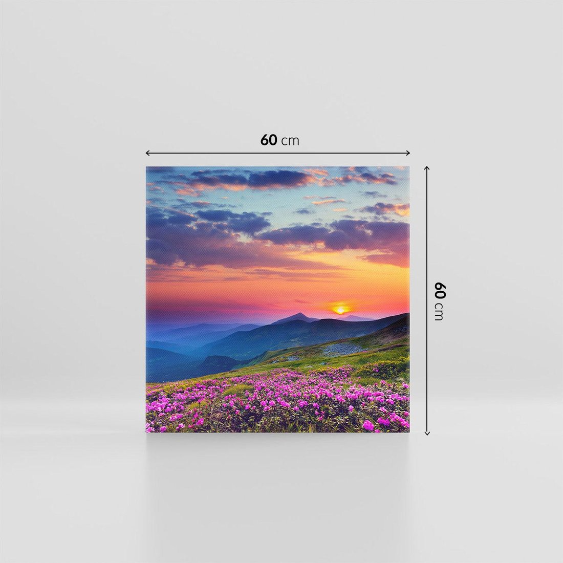 Obraz na płótnie 60x60 - Górski Zachód - góry, łąka